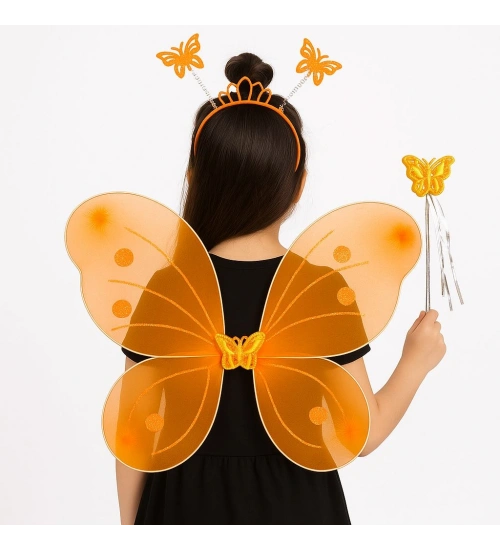 Turuncu Kelebek Kız Seti – 50 cm Kelebek Kanadı, Taç ve Asa