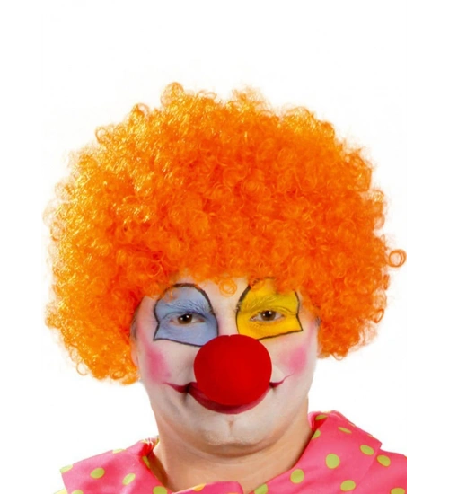 Turuncu Renk Kıvırcık Afro Bonus Peruk Takma Saç ve Kırmızı Burun Seti