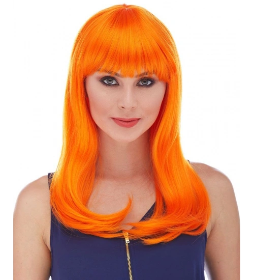 Turuncu Renk Uzun Düz Parti Peruğu