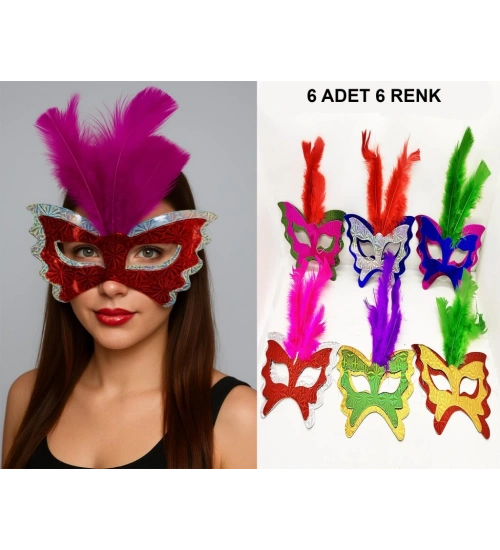 Tüylü Kağıt Parti Venedik Balo After Maskesi 6 Adet