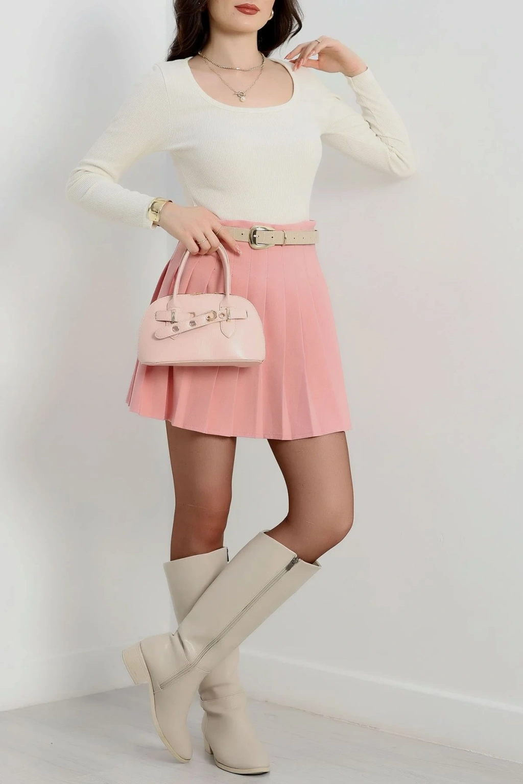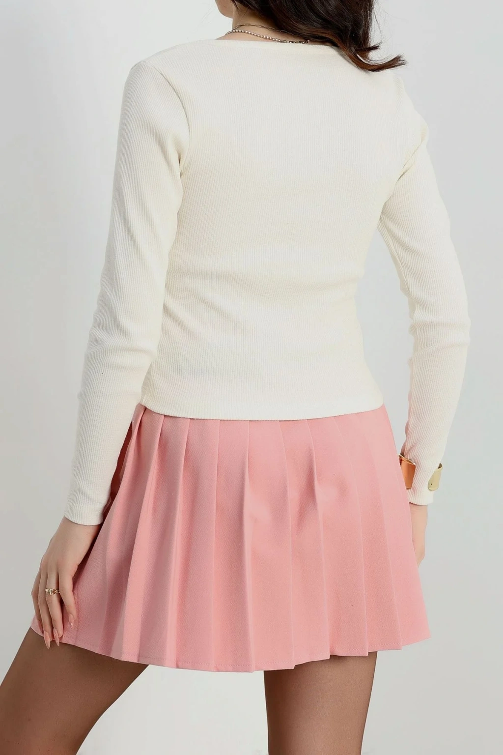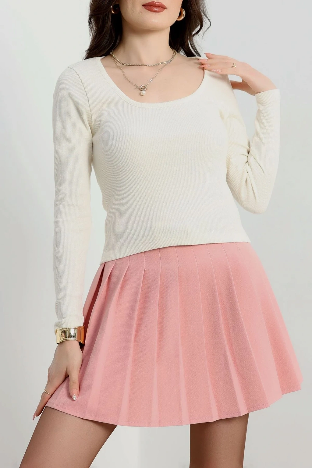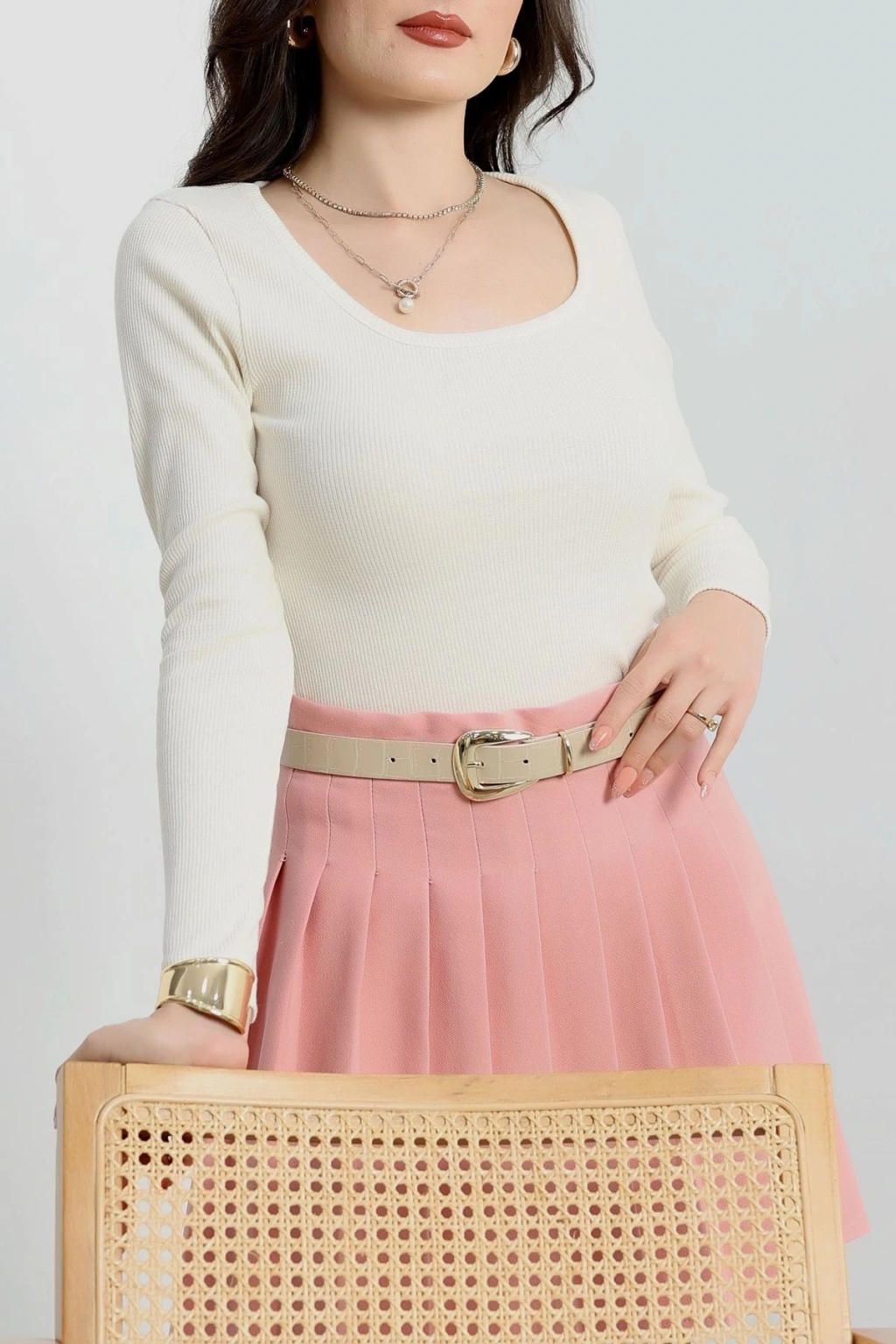 Fitilli Bisiklet Yaka İkili Bluz Pembe T4341