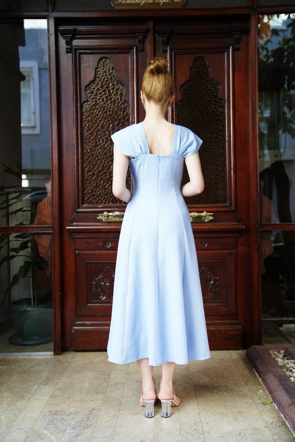 Askılı ch kumaş düğmeli elbise pudrabeyaz h265007