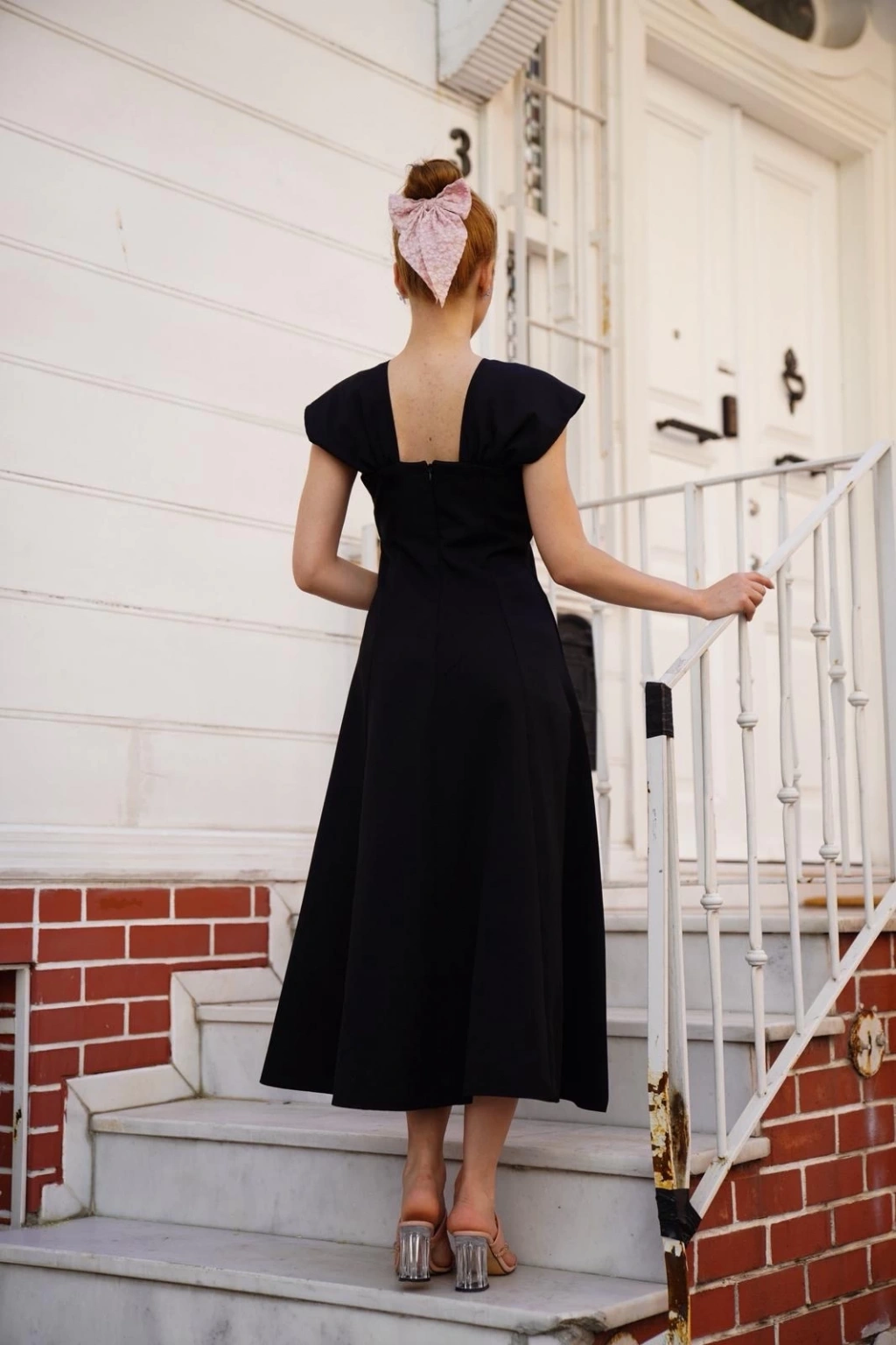 U yaka prenses elbise siyah s255101, şıklığı ve zarafeti bir arada sunuyor.