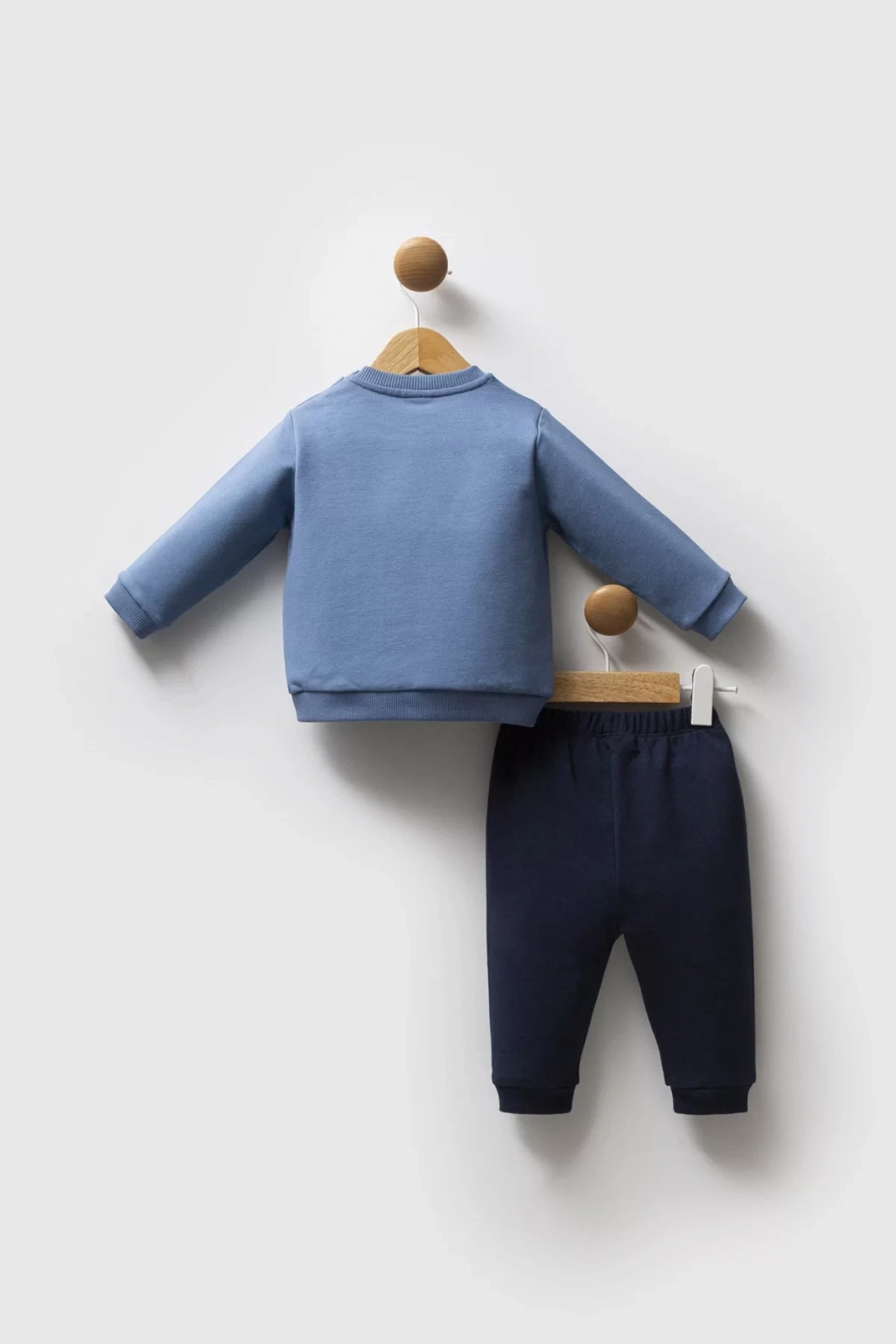 9-12-18-24 Ay Pohh Desenli Uzun Kollu Sweat 2Li Kız Erkek Bebek Takımı Krem
