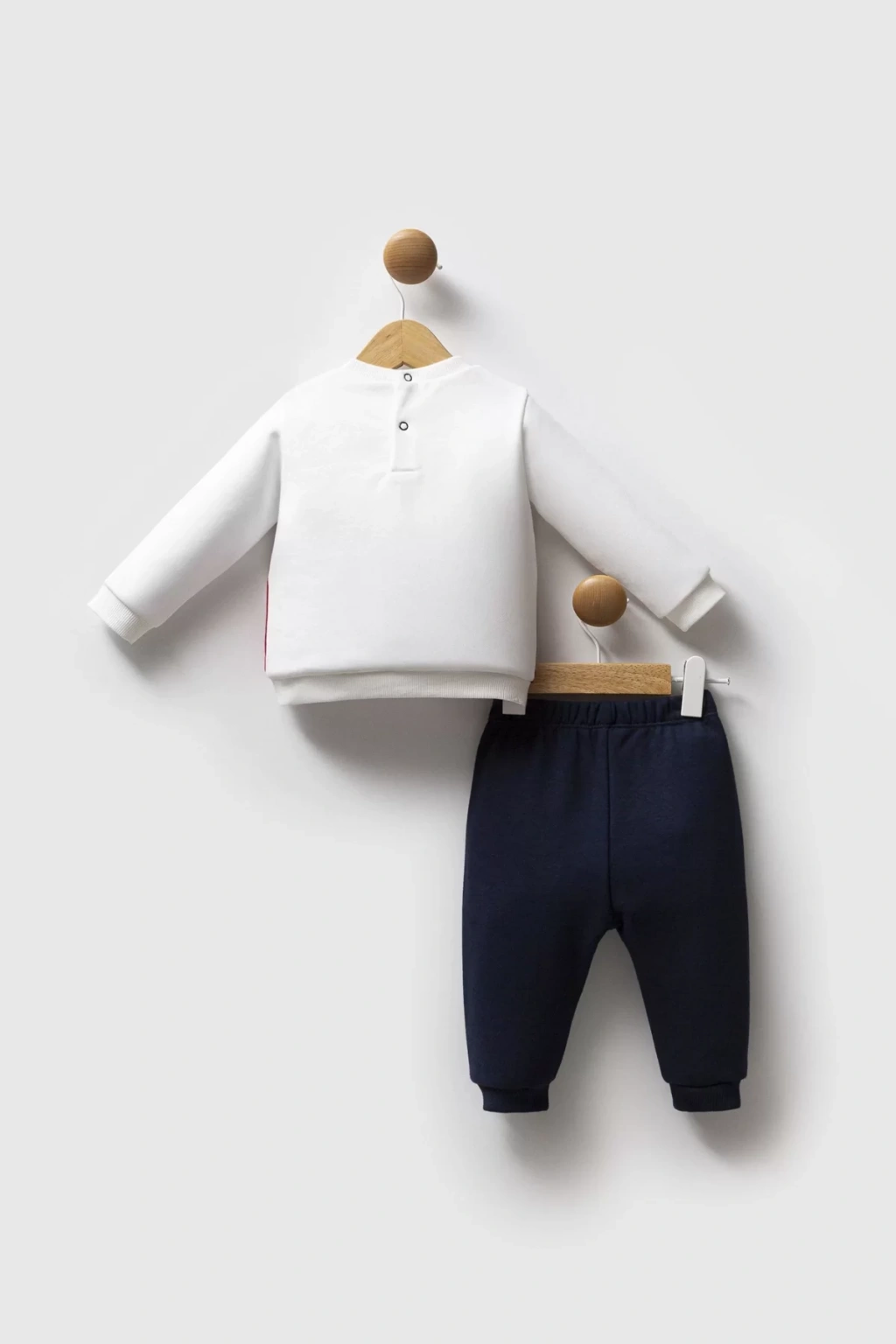 9-12-18-24 Ay Pohh Desenli Uzun Kollu Sweat 2Li Kız Erkek Bebek Takımı Krem