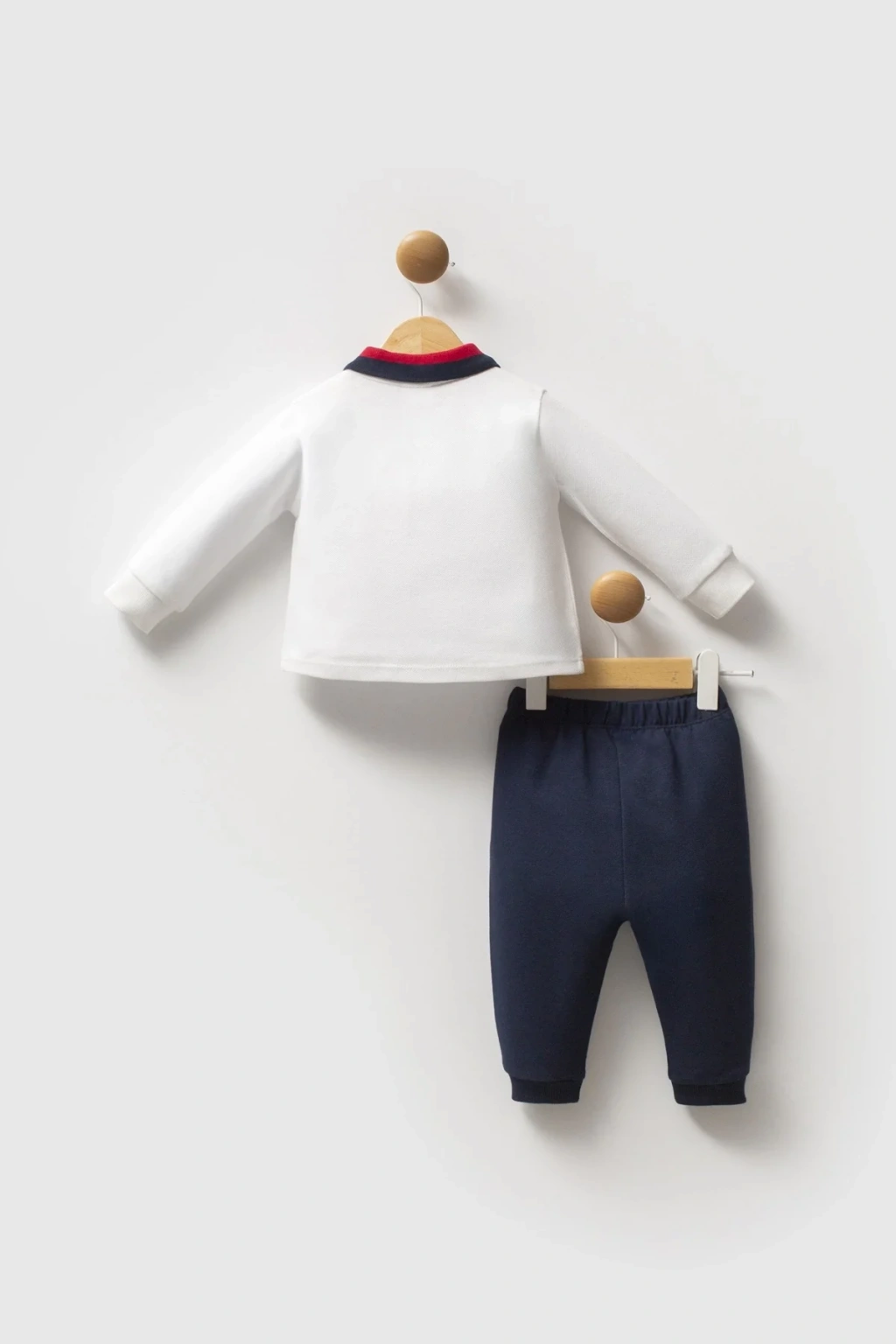 9-12-18-24 Ay Pohh Desenli Uzun Kollu Sweat 2Li Kız Erkek Bebek Takımı Krem