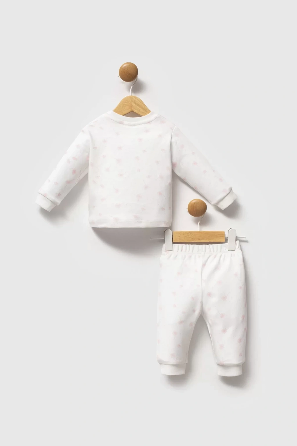 9-12-18-24 Ay Pohh Desenli Uzun Kollu Sweat 2Li Kız Erkek Bebek Takımı Krem