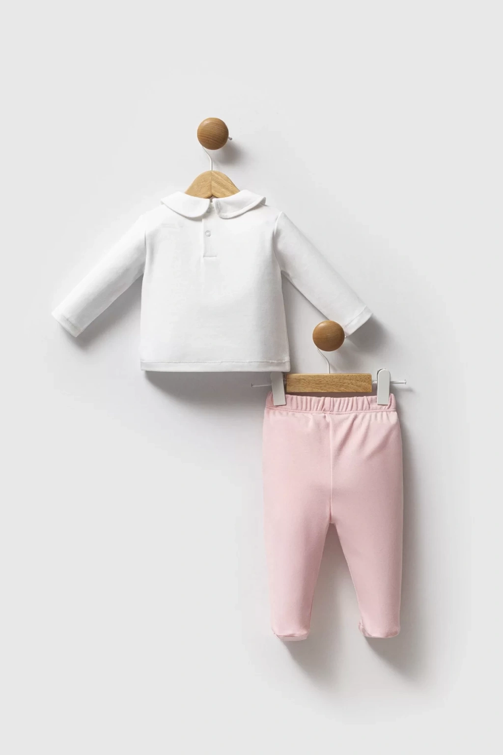 9-12-18-24 Ay Pohh Desenli Uzun Kollu Sweat 2Li Kız Erkek Bebek Takımı Krem
