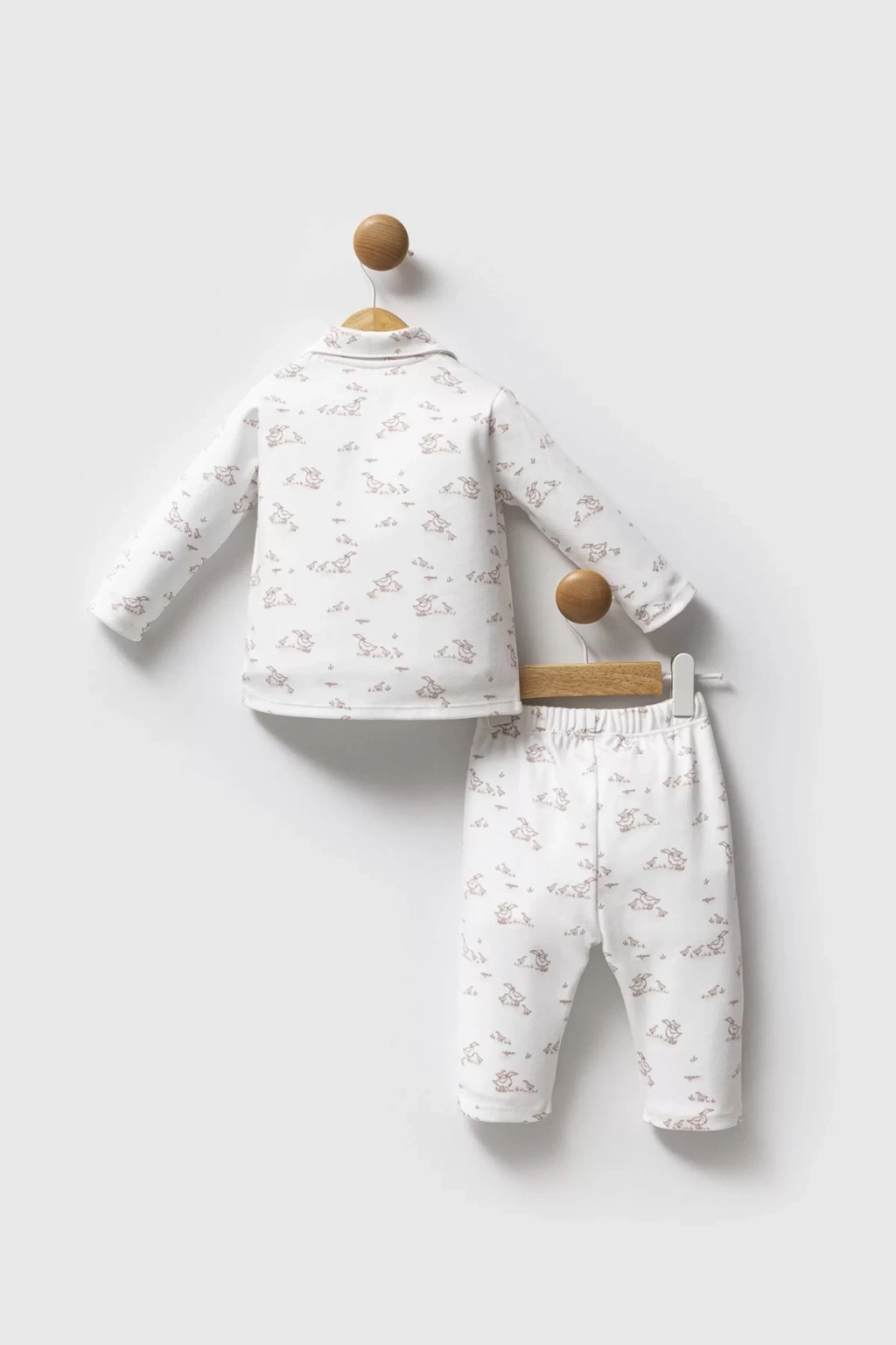 9-12-18-24 Ay Pohh Desenli Uzun Kollu Sweat 2Li Kız Erkek Bebek Takımı Krem
