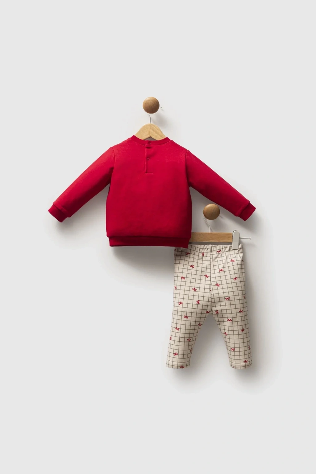 9-12-18-24 Ay Pohh Desenli Uzun Kollu Sweat 2Li Kız Erkek Bebek Takımı Krem
