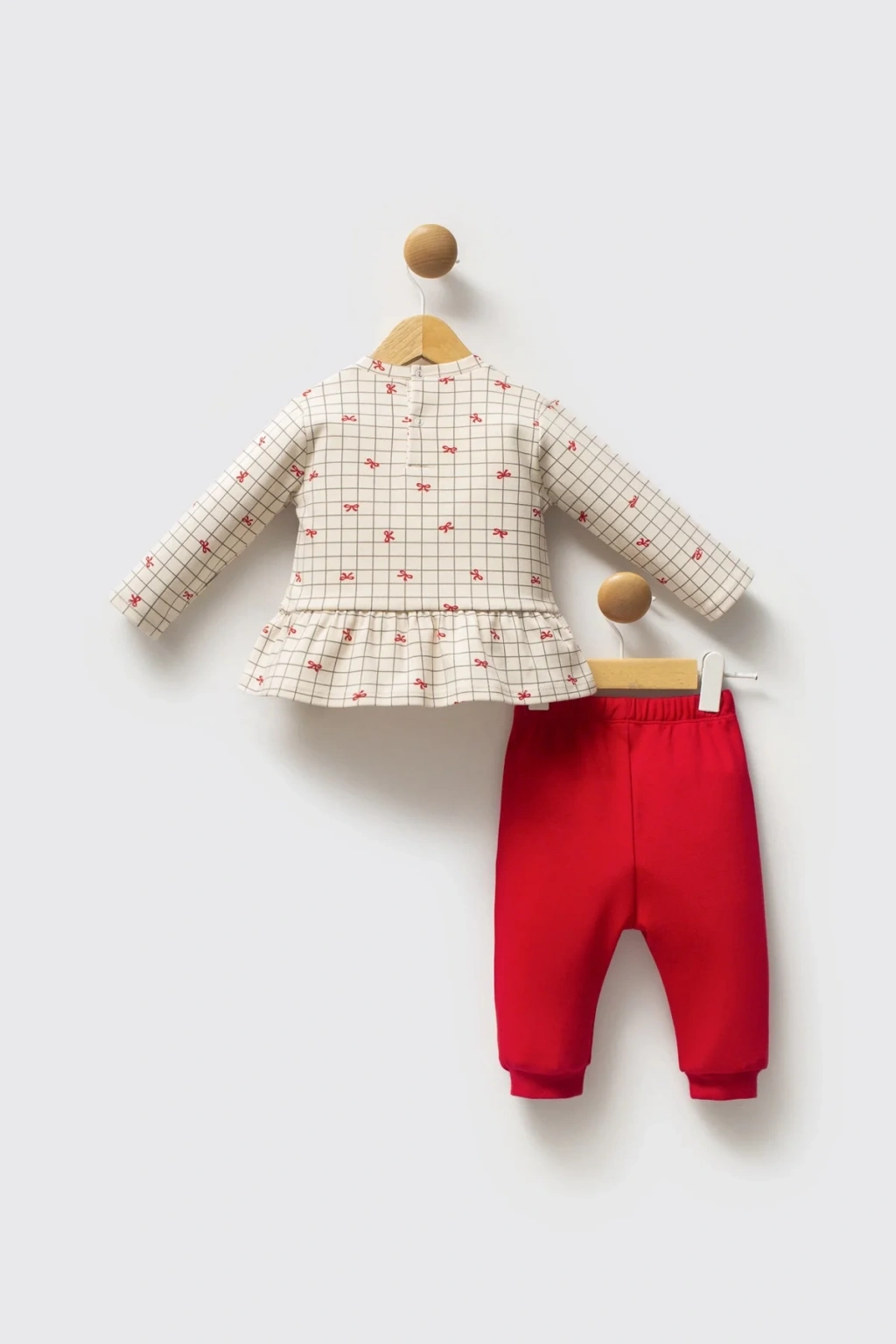 9-12-18-24 Ay Pohh Desenli Uzun Kollu Sweat 2Li Kız Erkek Bebek Takımı Krem