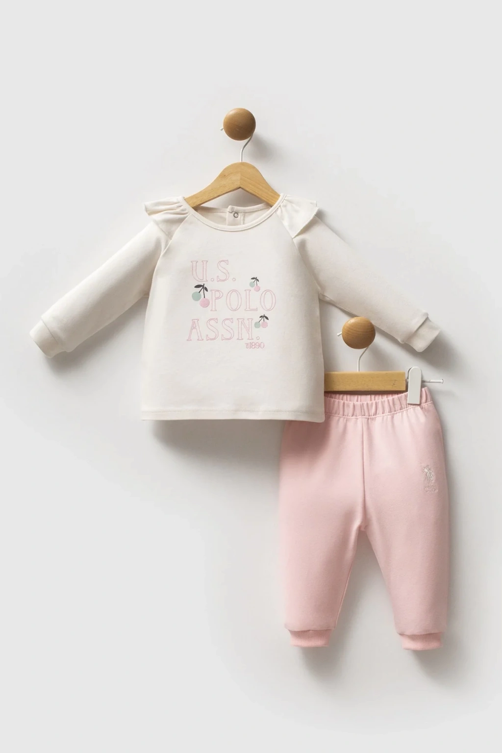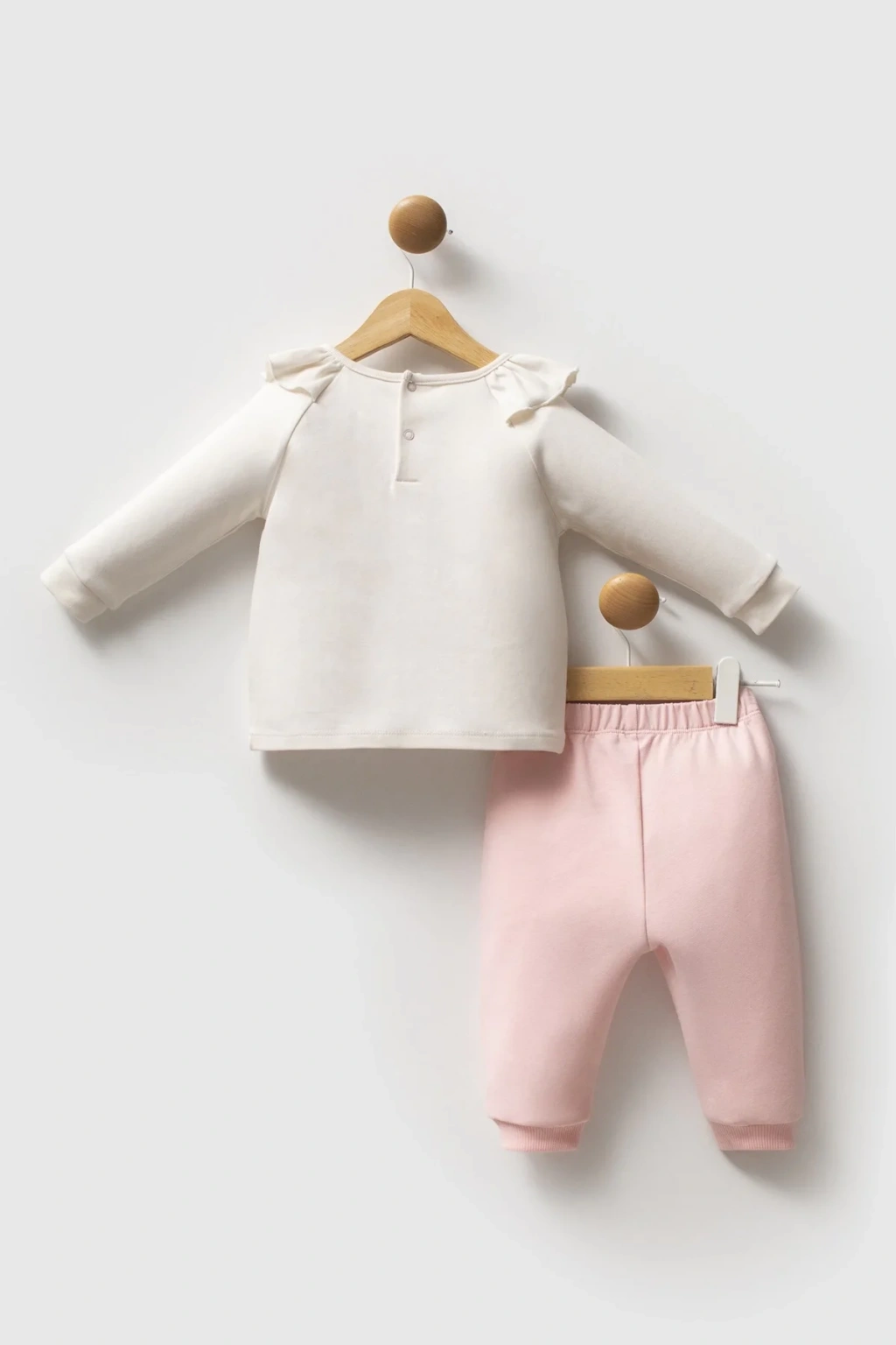 9-12-18-24 Ay Pohh Desenli Uzun Kollu Sweat 2Li Kız Erkek Bebek Takımı Krem