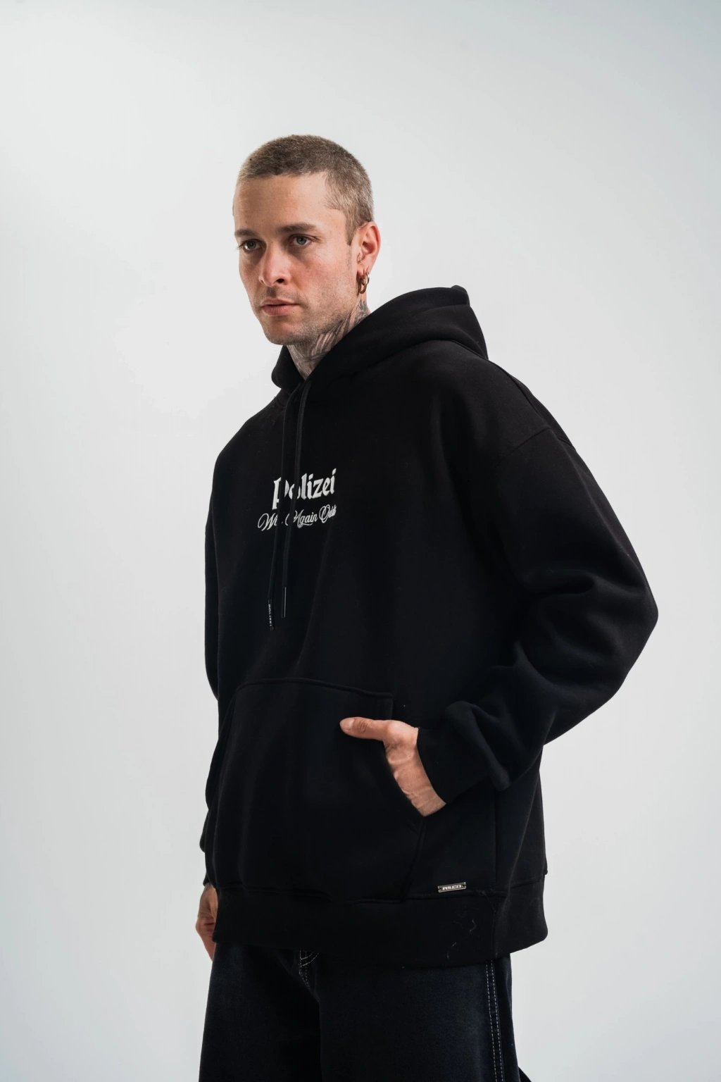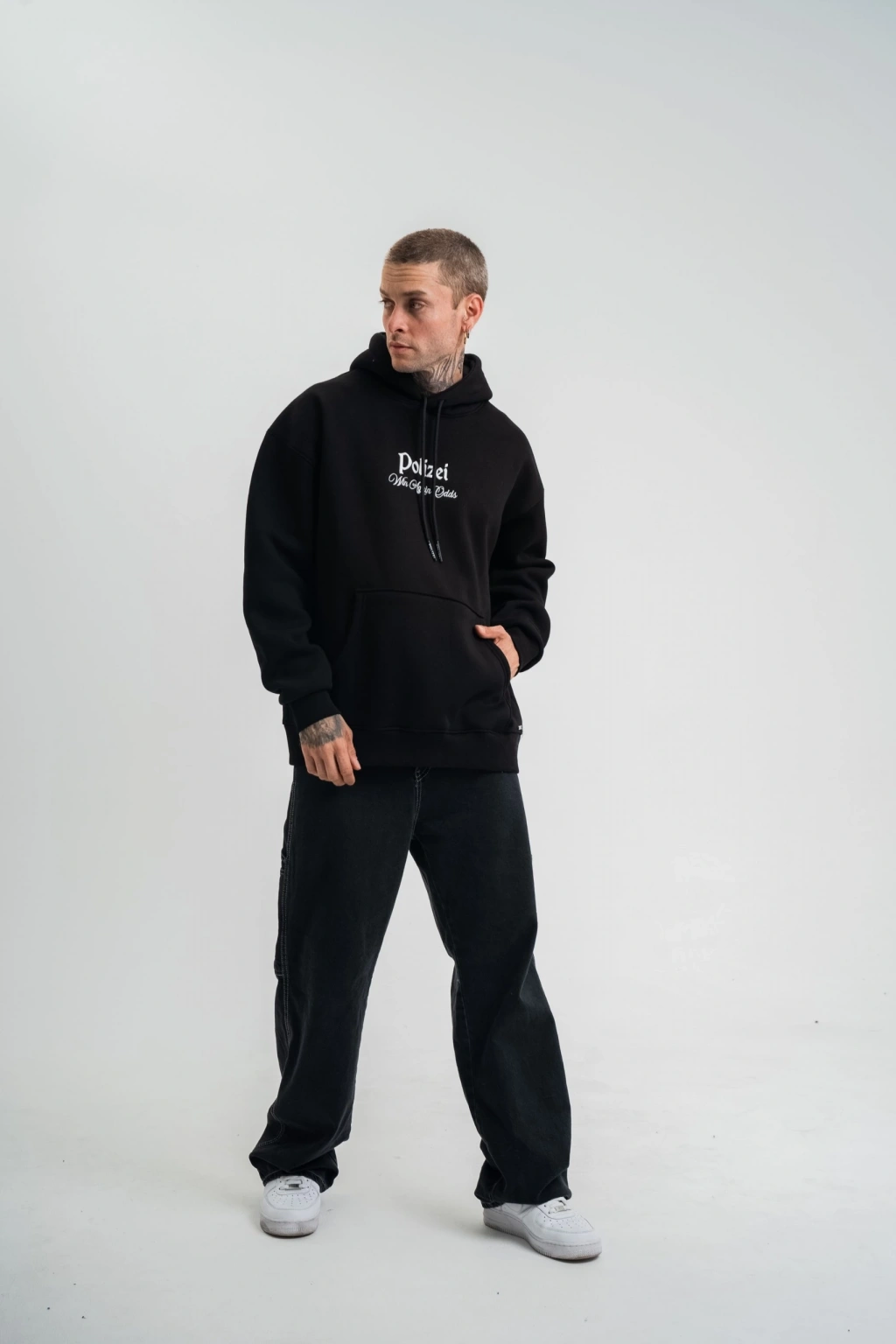 Erkek Double Oversize Kapüşonlu Sweatshirt 3 İplik Pamuklu Göğüs Nakışlı Premium Kalite – Siyah
