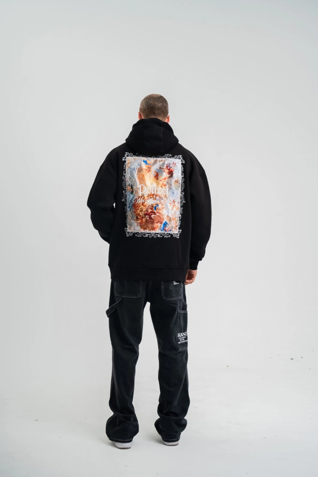 Erkek Premium Nakışlı Kapşonlu Sweatshirt Double Oversize Üç İplik Pamuklu - Siyah