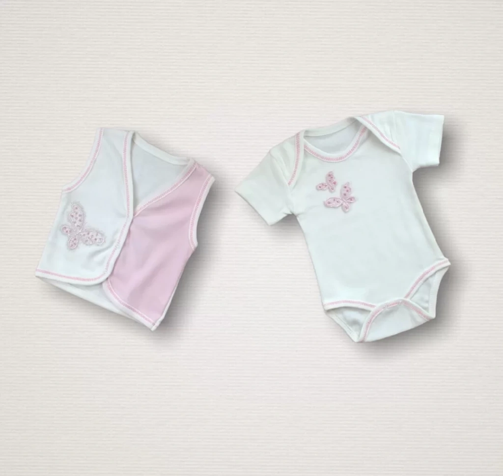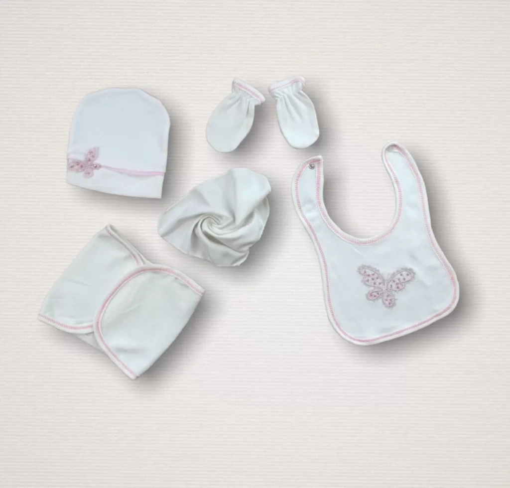 Uçan Kelebekler Nakışlı 10lu Zıbın Takımı Hastane Çıkışı Pembe