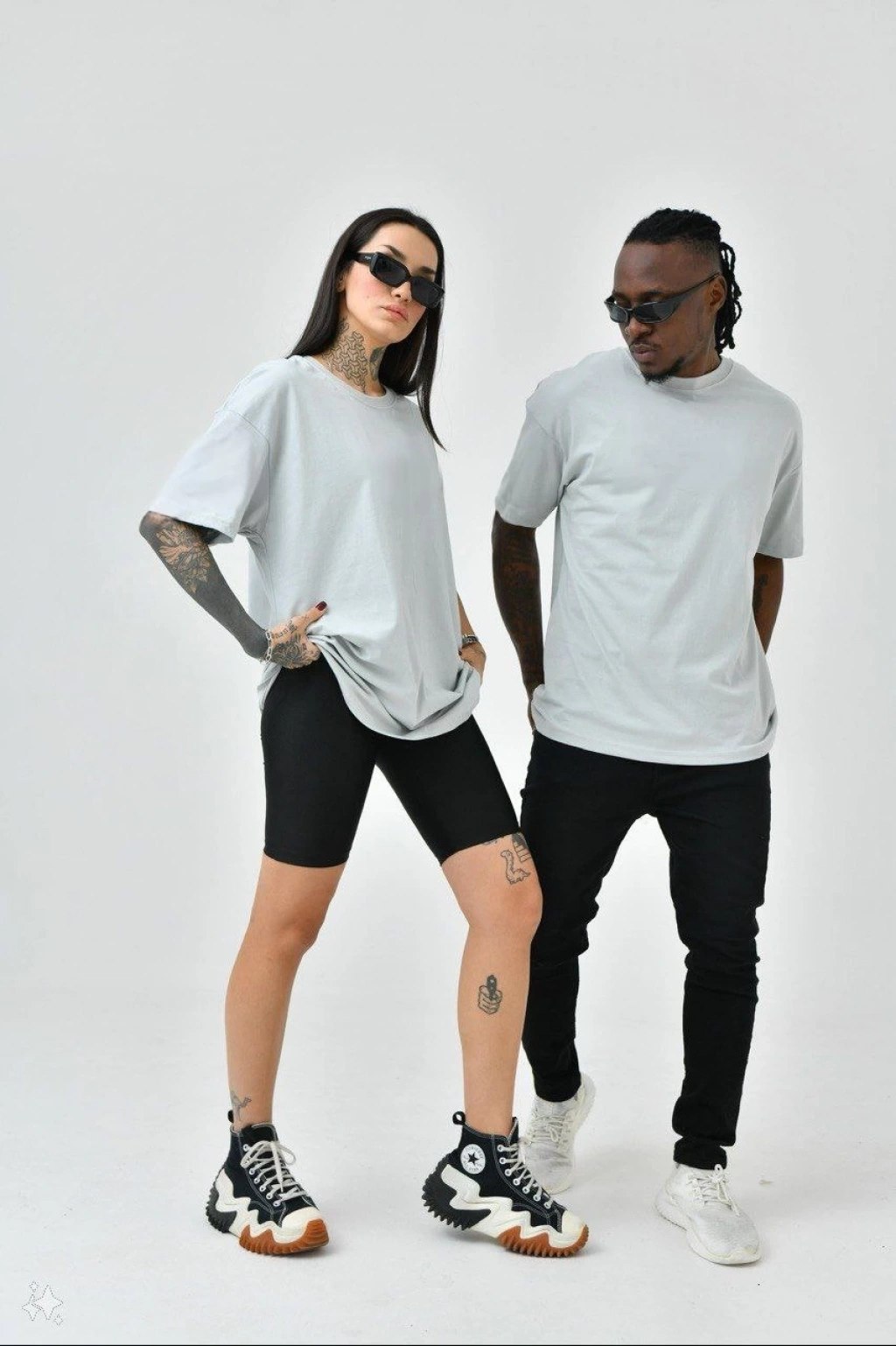 AICG Ön Arka Baskılı Bisiklet Yaka Kadın Oversize Bisiklet Yaka T-shirt - Beyaz