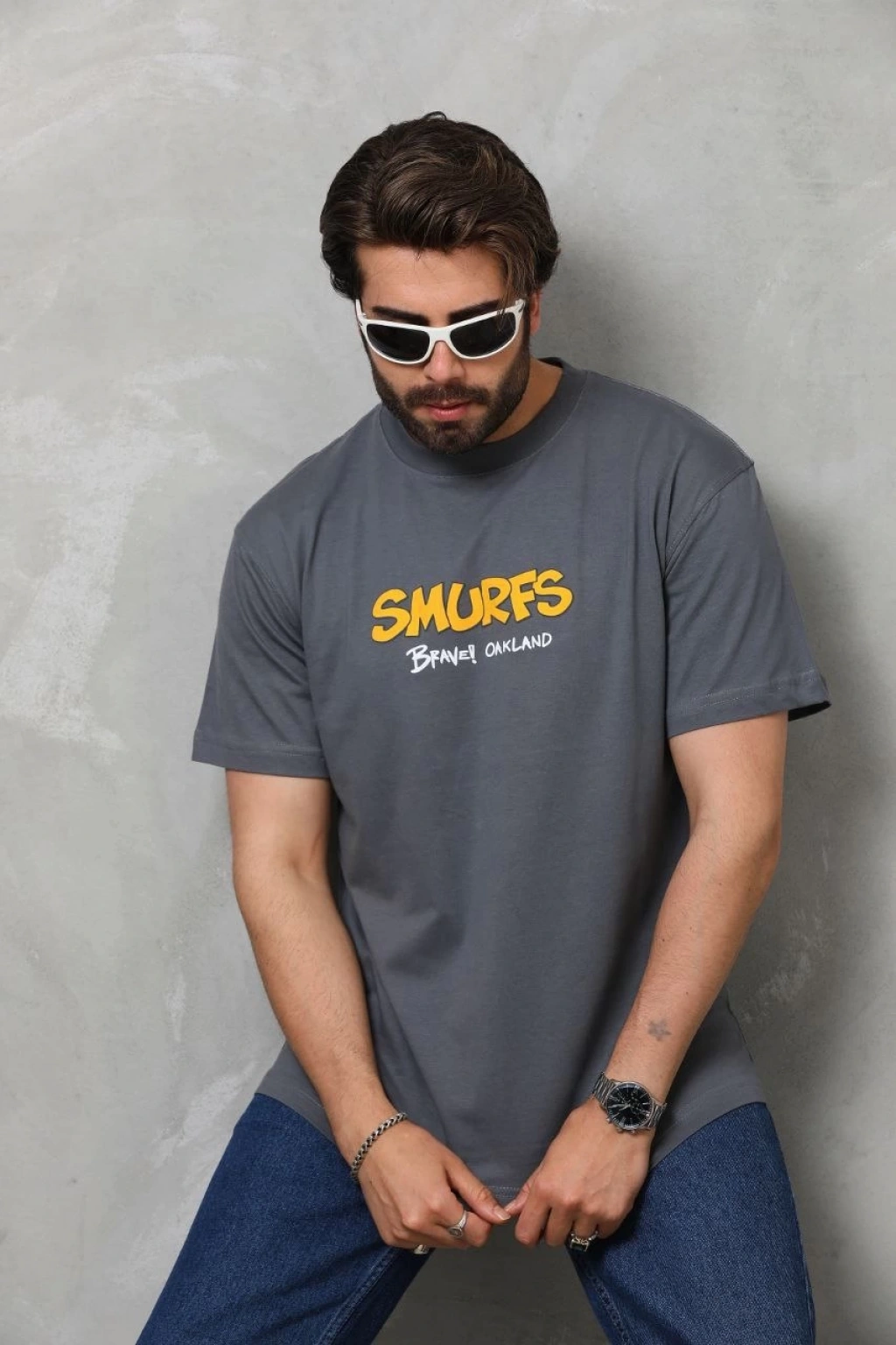 Unisex Basic Bisiklet Yaka Oversize T-Shirt - Füme