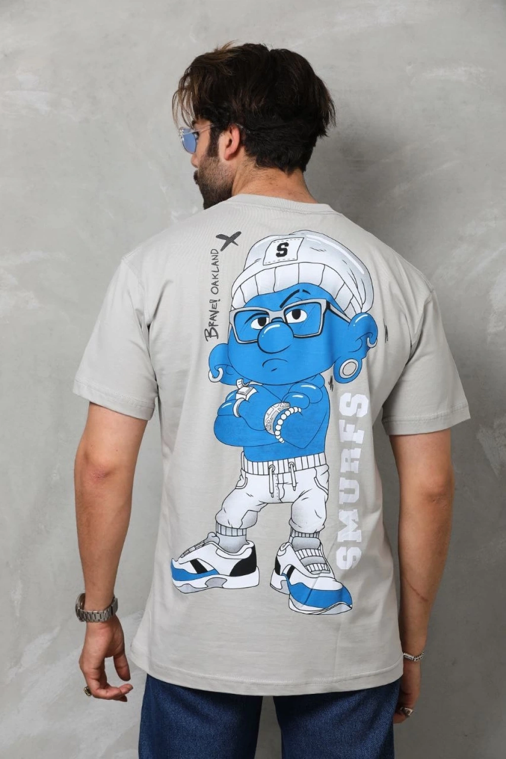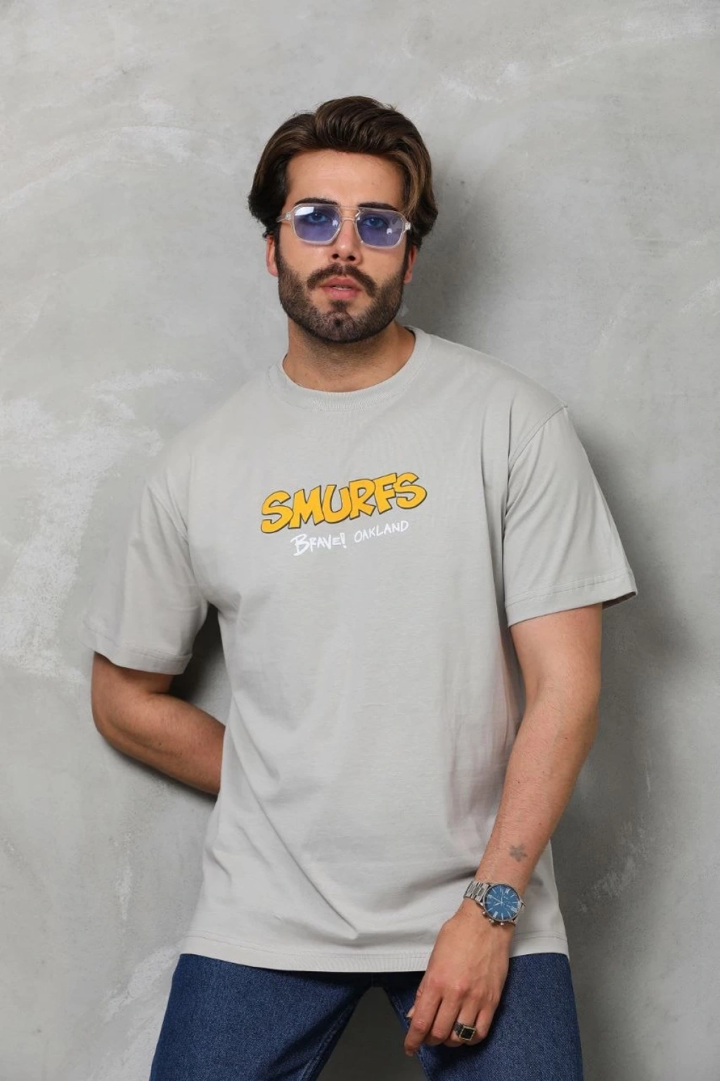 Erkek Sırt Baskılı Oversize T-shirt - Bej