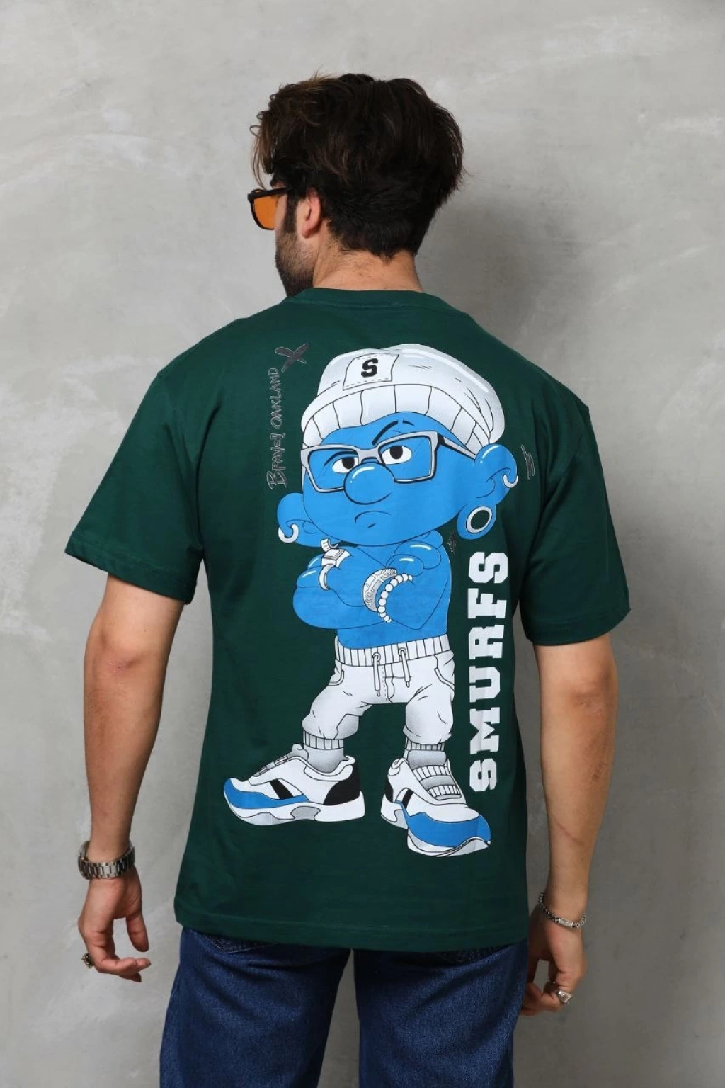 Erkek Sırt Baskılı Oversize T-Shirt - Beyaz