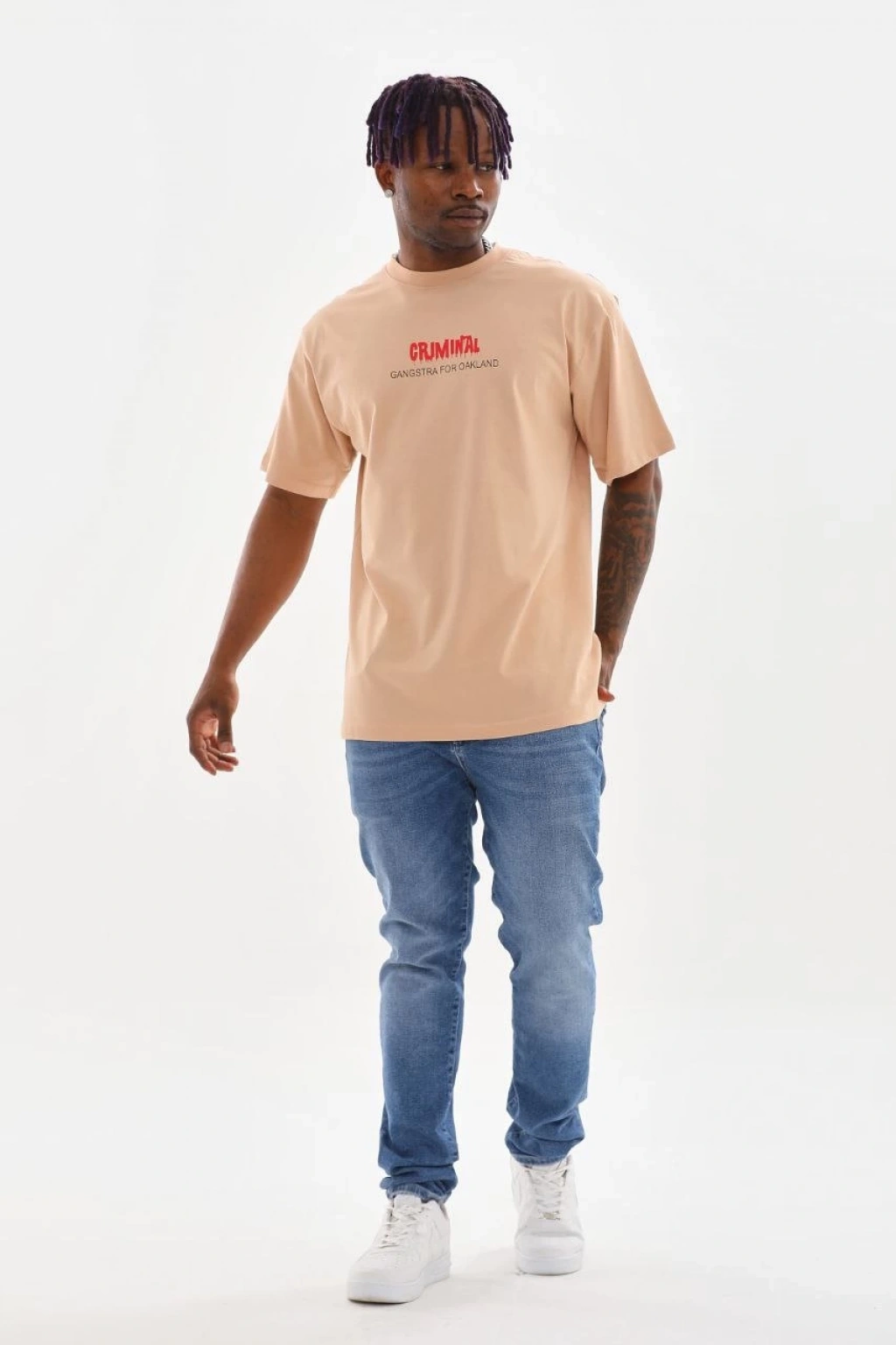 Erkek Sırt Baskılı Oversize T-shirt - Bej