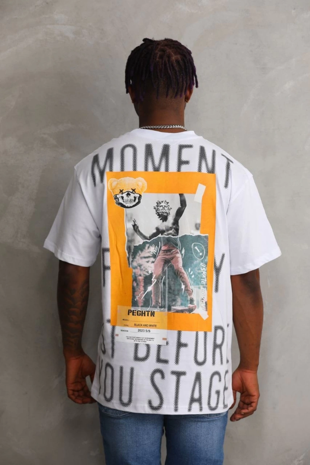Unisex Baskılı Oversize T-Shirt - Beyaz