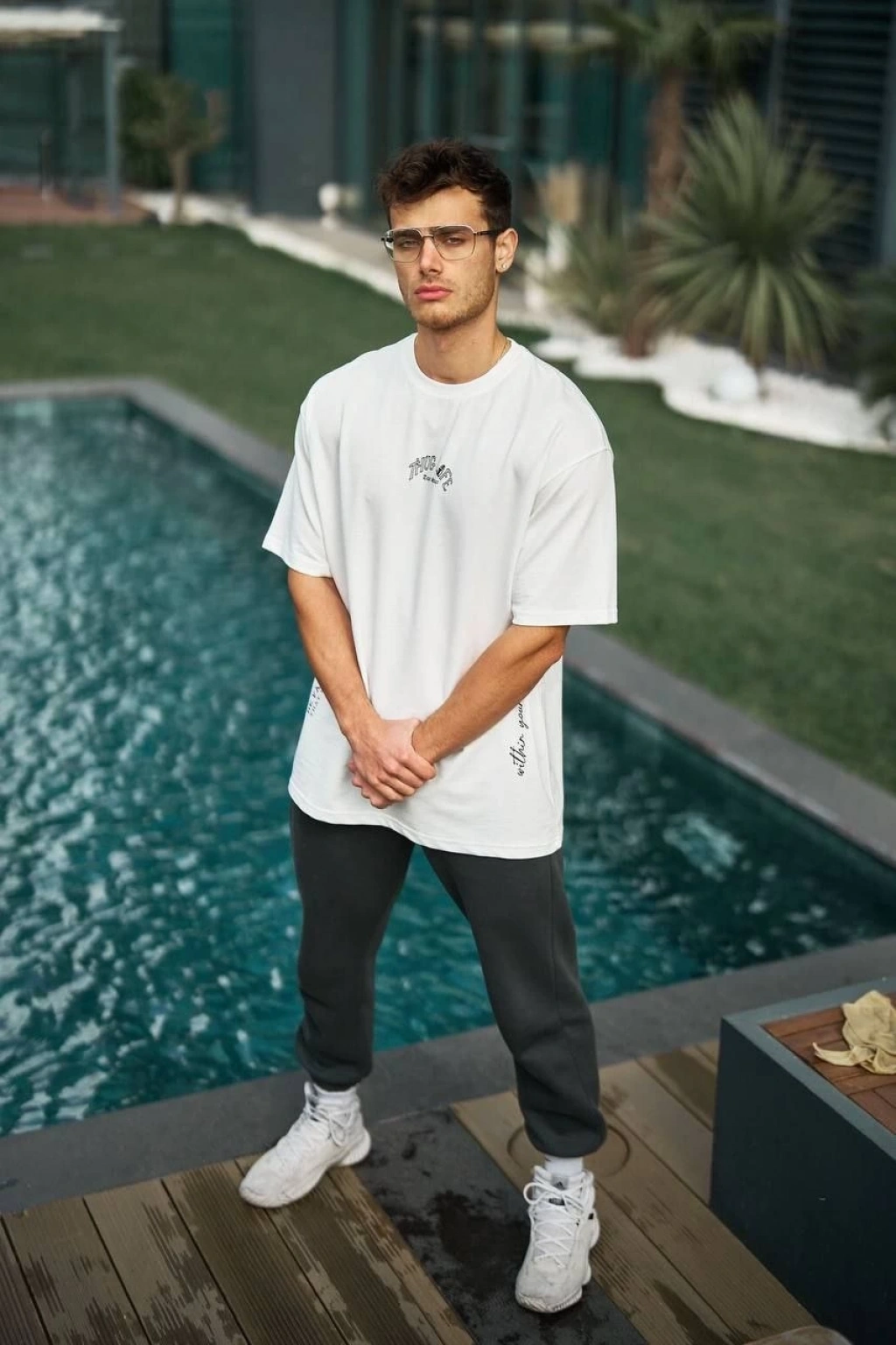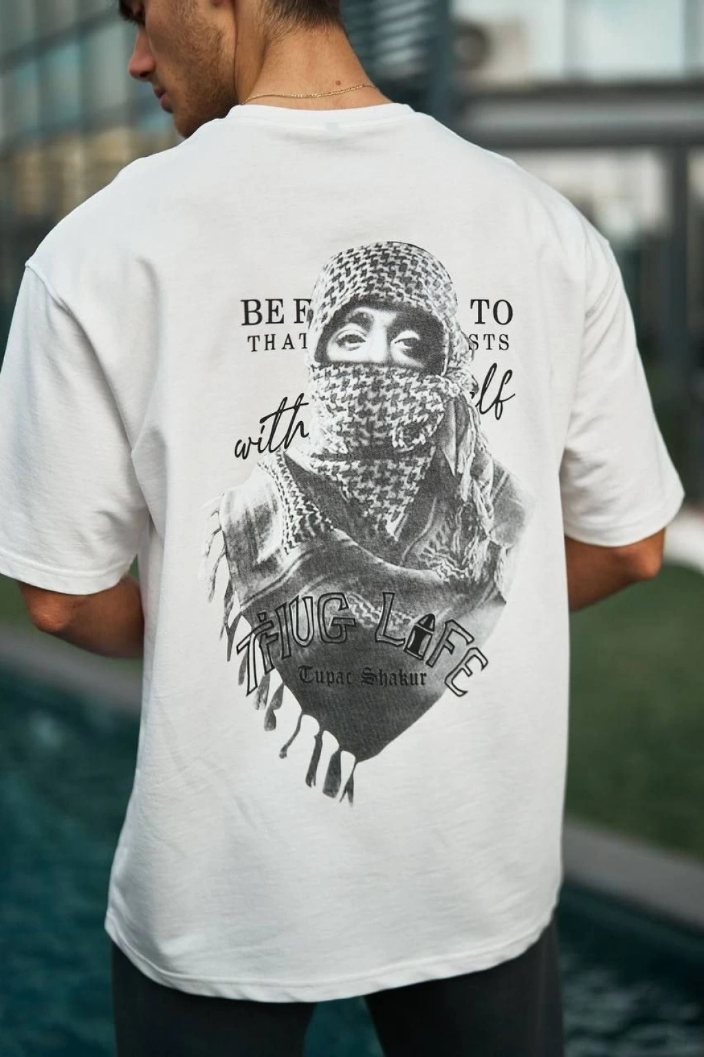 Erkek Sırt Baskılı Oversize T-Shirt - Beyaz