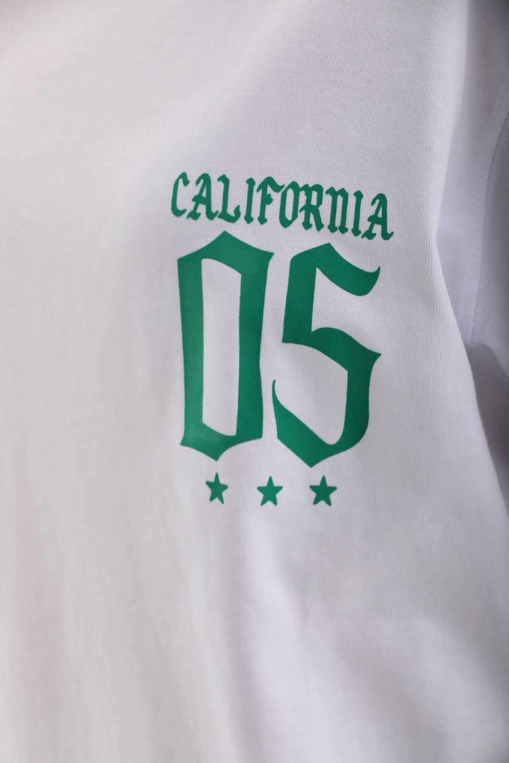 DAY ONE BASKILI OVERSİZE BİSİKLET YAKA T-SHİRT - BEYAZ