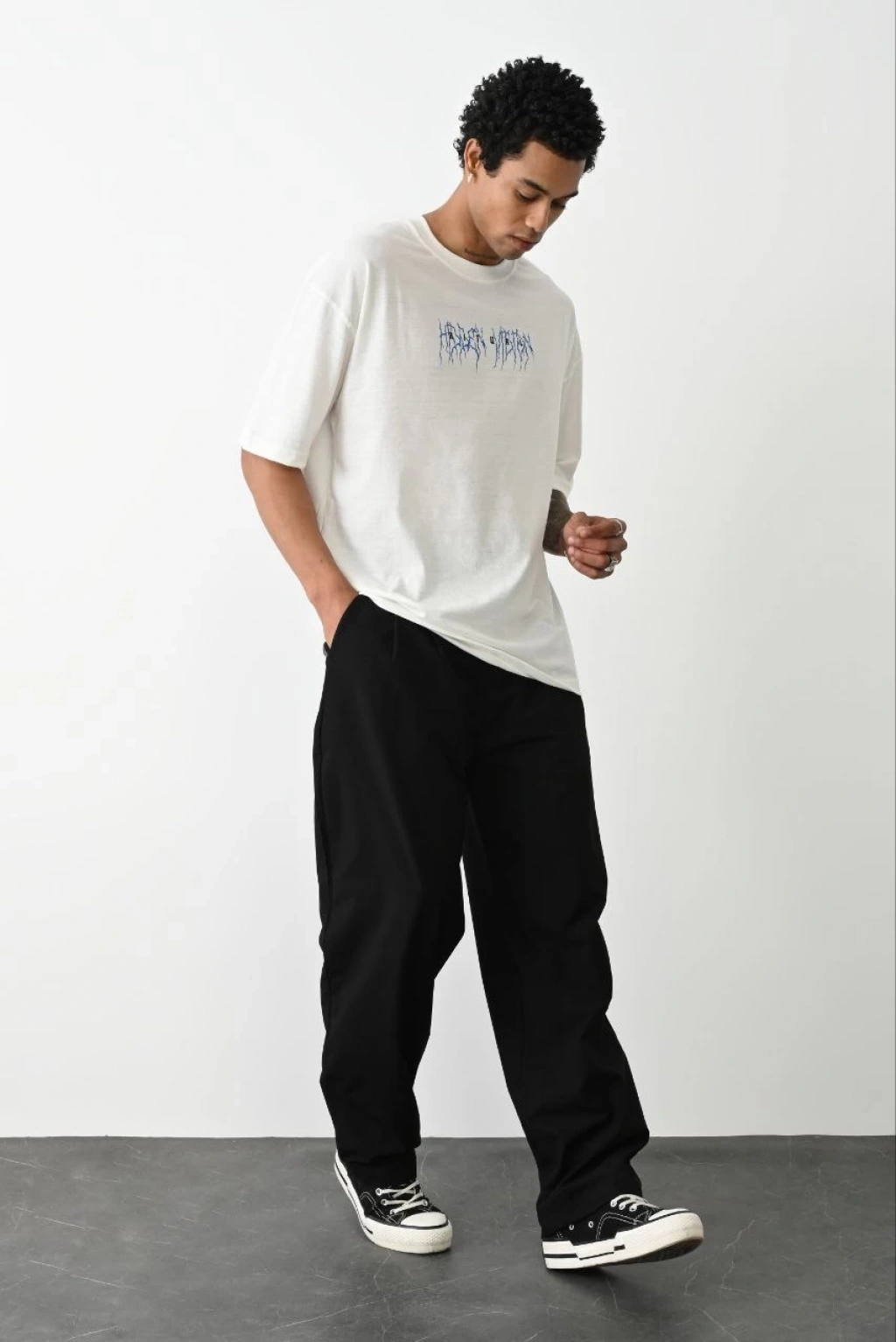 Unisex Baskılı Oversize T-Shirt - Beyaz