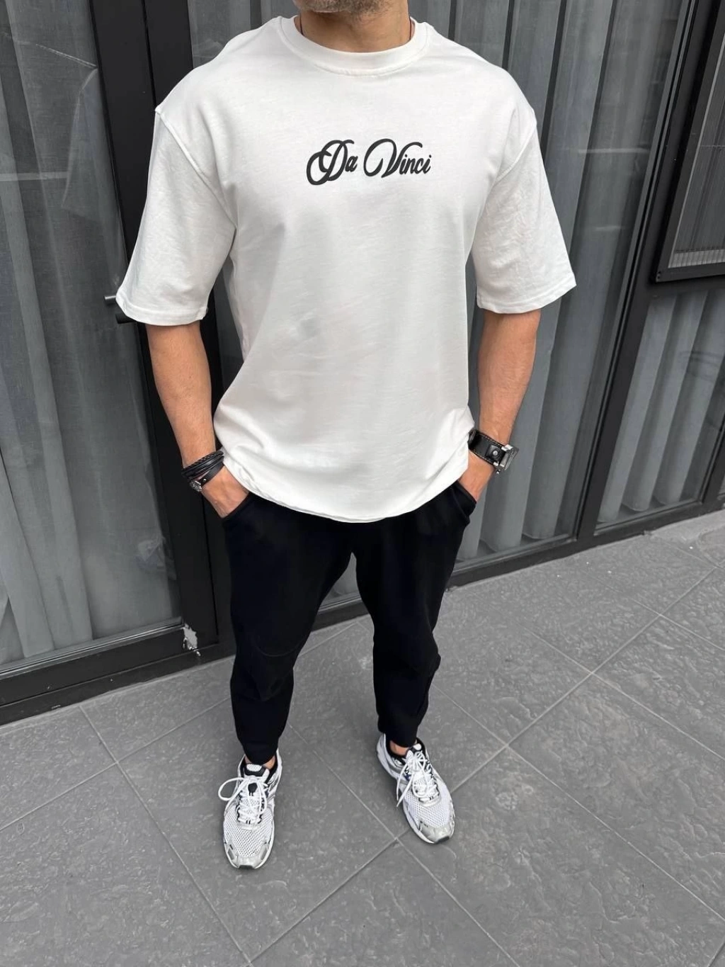 Eşsiz Baskı Tasarımlı Şık Büyük Beden Erkek Tişörtü - Rahat Polyester, Makinede Yıkanabilir, Yuvarlak Yaka - Her Mevsim İçin Mükemmel - Beyaz