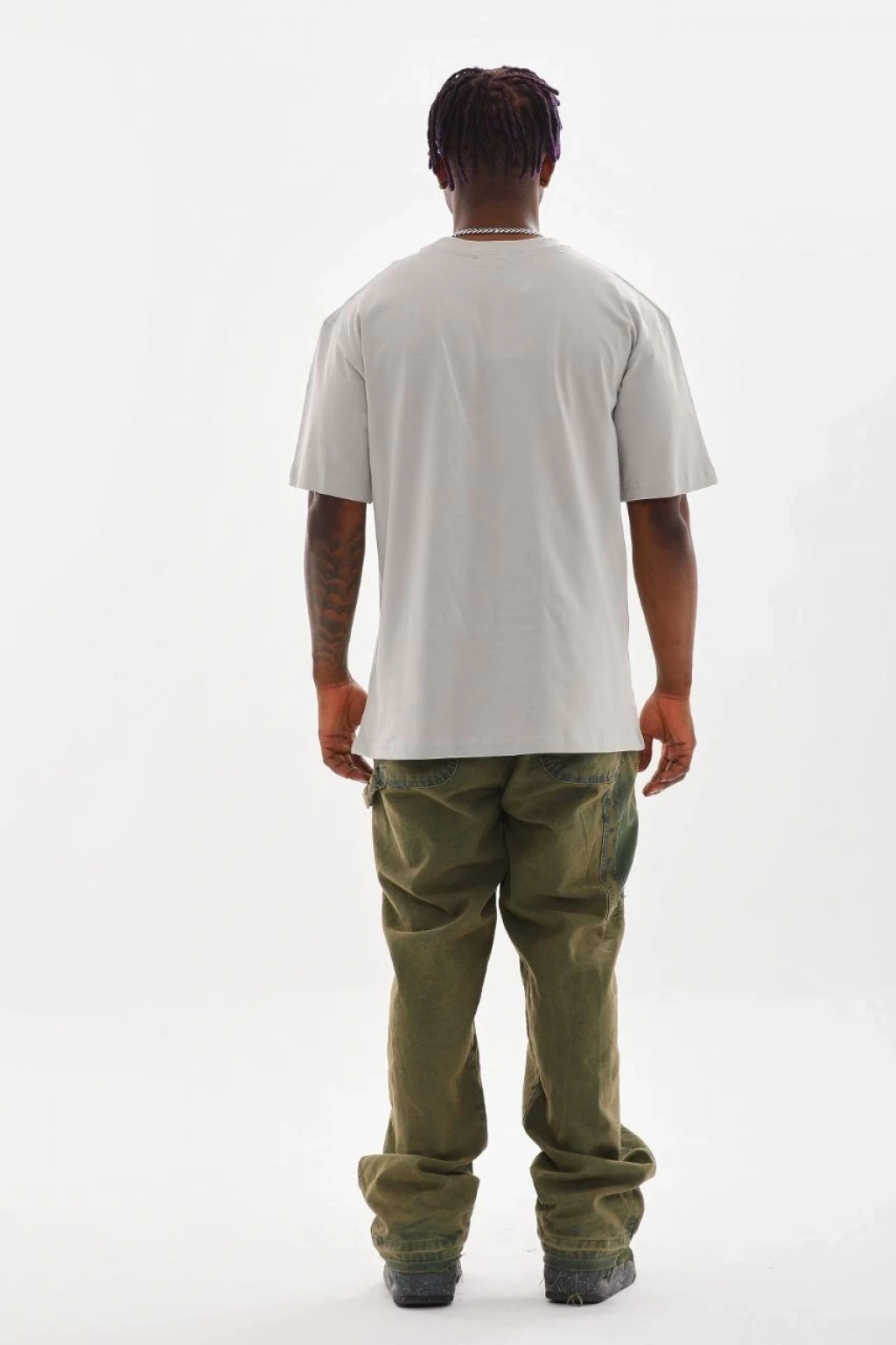 20/1 Penye Compack Ön Arka Ejder Baskılı Oversize Bisiklet Yaka T-shirt - Beyaz