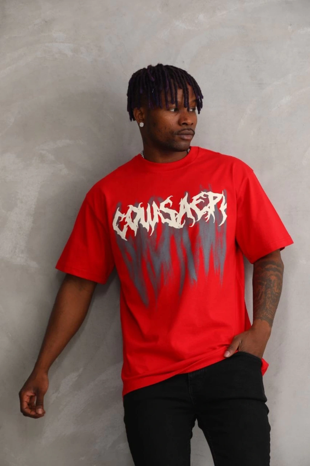 Unisex Baskılı Oversize T-Shirt - Kırmızı