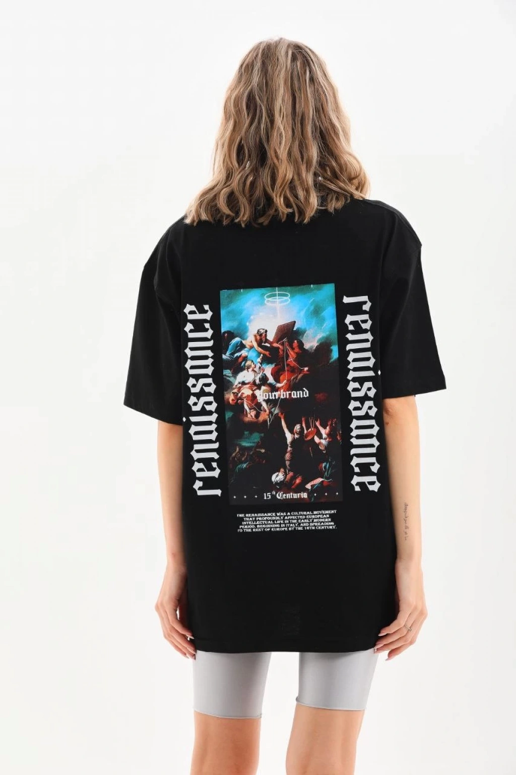 Unisex Baskılı Oversize T-Shirt - Siyah