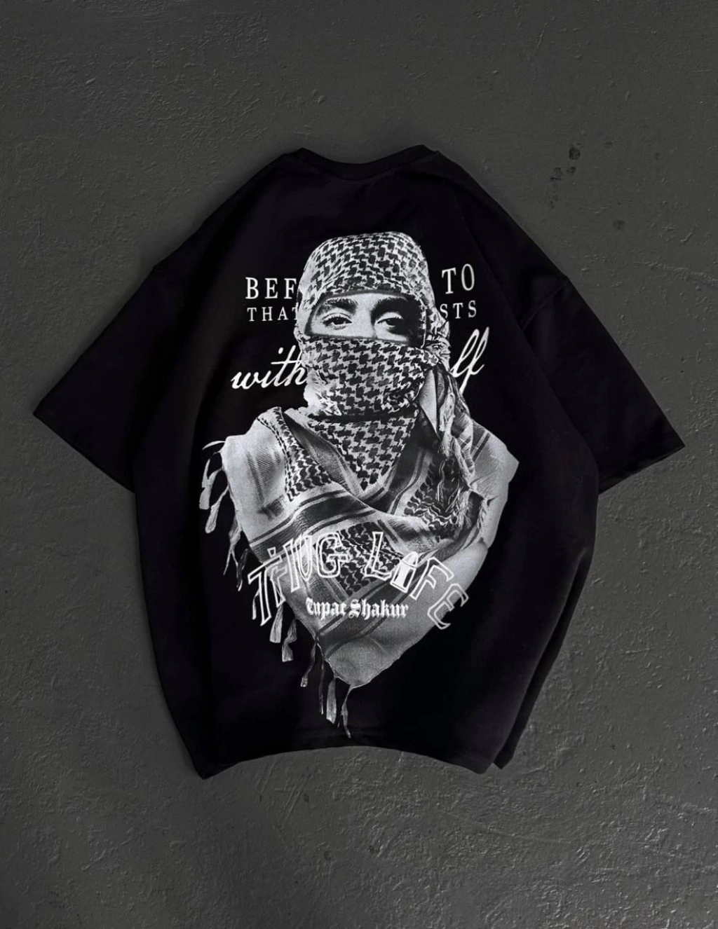 Unisex Bisiklet Yaka Baskılı Oversize T-Shirt - Siyah