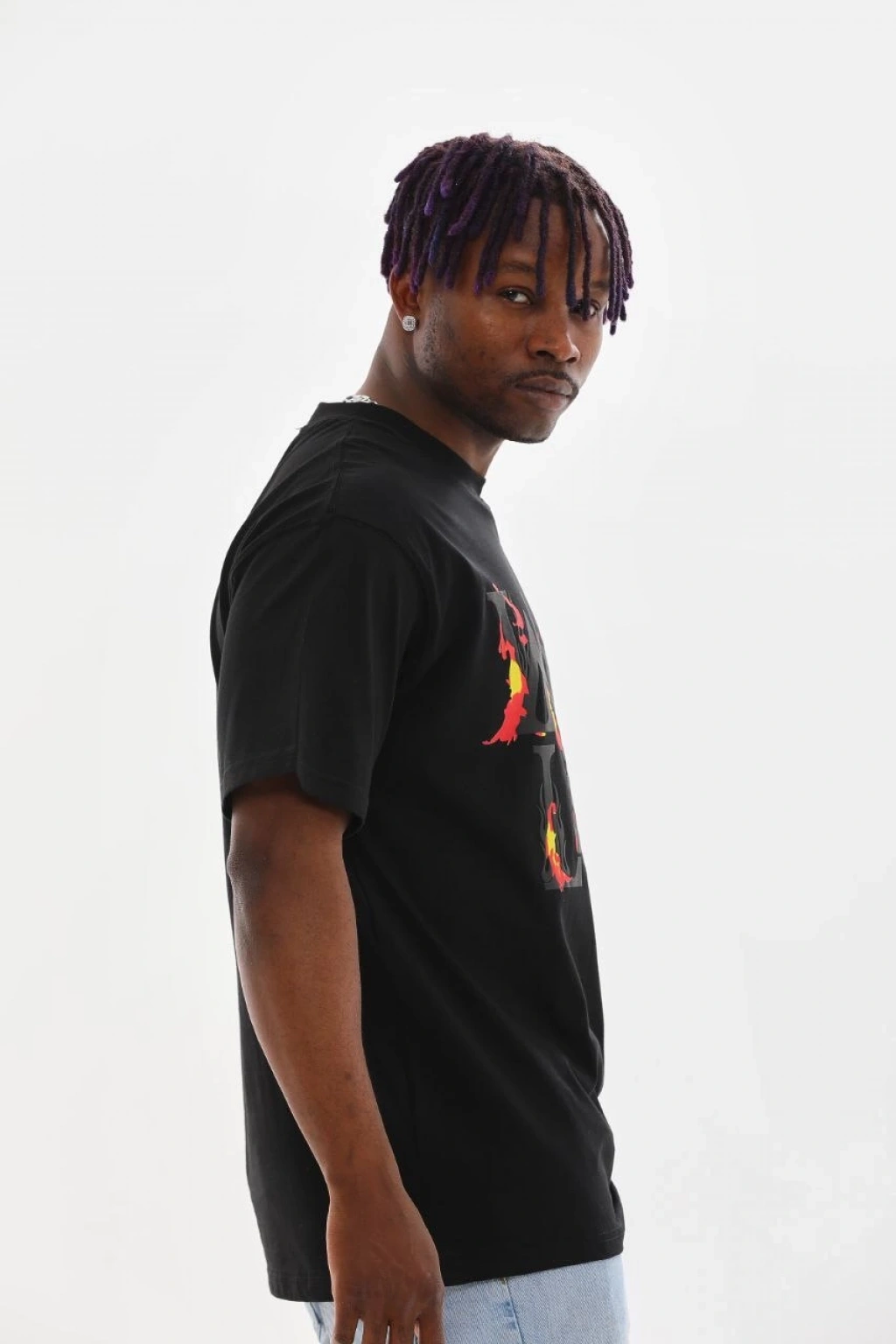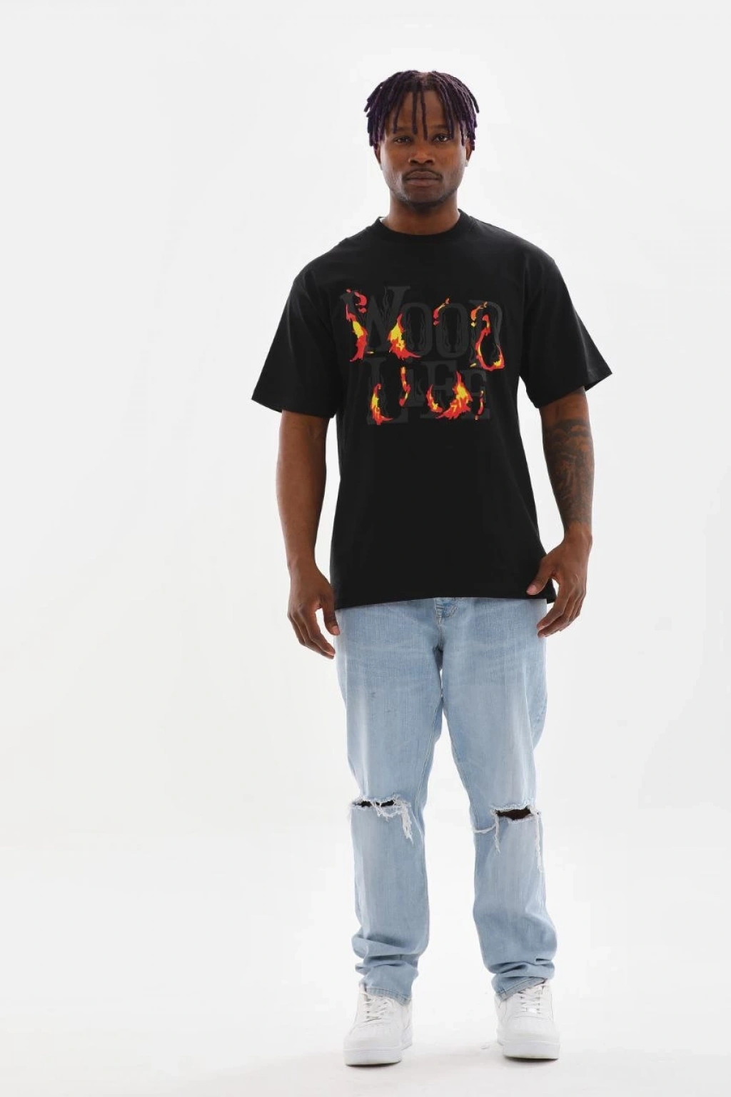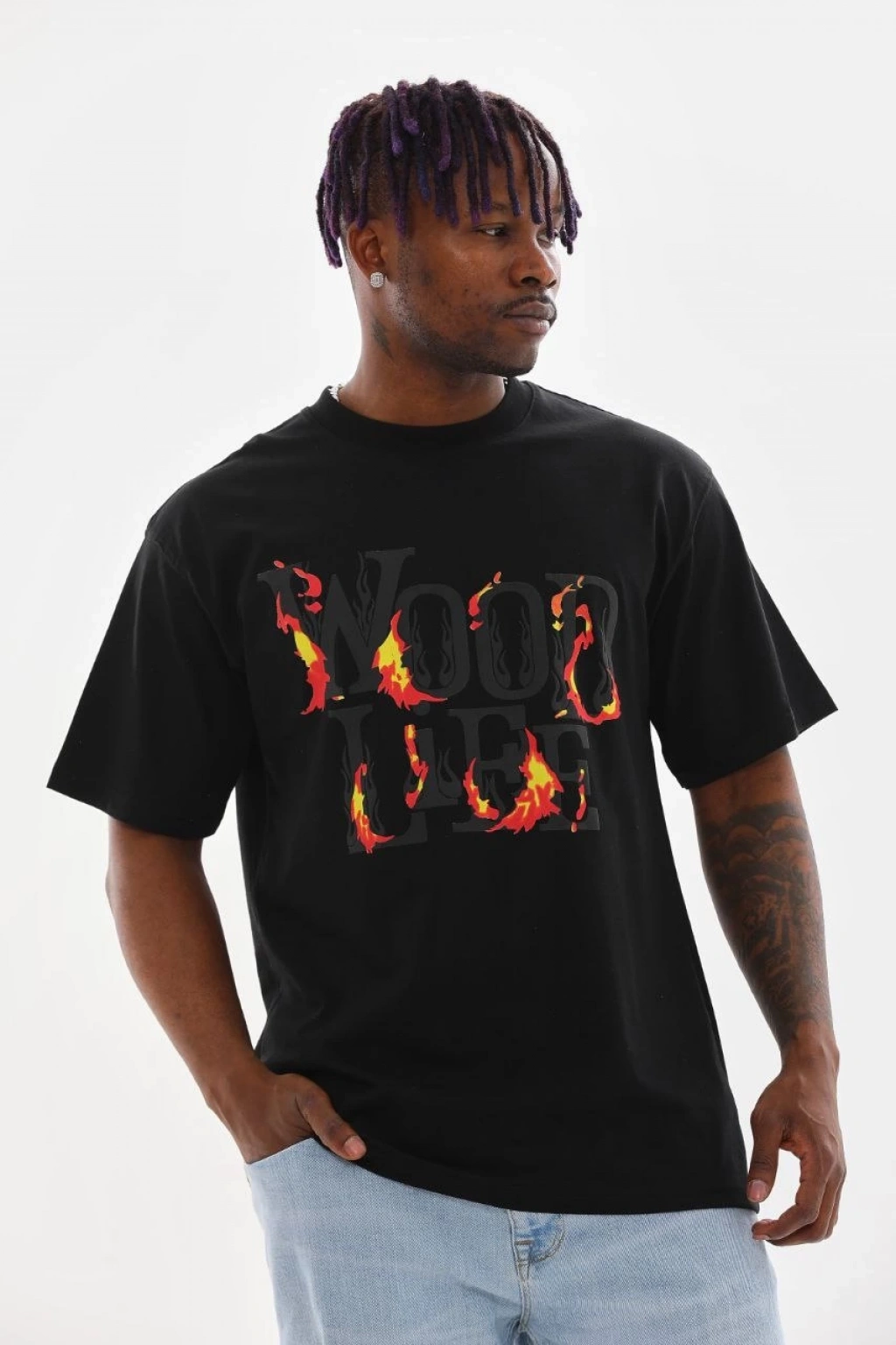 Erkek Asit Yıkama Bisiklet Yaka Kısa Kollu Oversize T-Shirt Tişört - Siyah