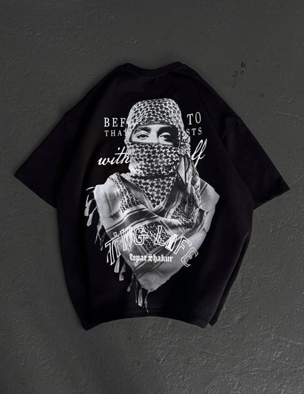 Unisex Baskılı Oversize T-Shirt - Siyah