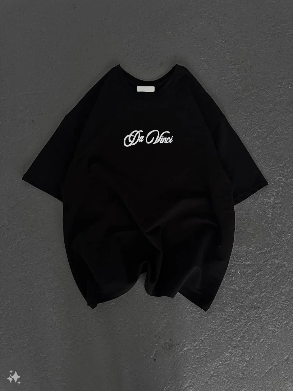 Unisex Bisiklet Yaka Baskılı Oversize T-Shirt - Siyah