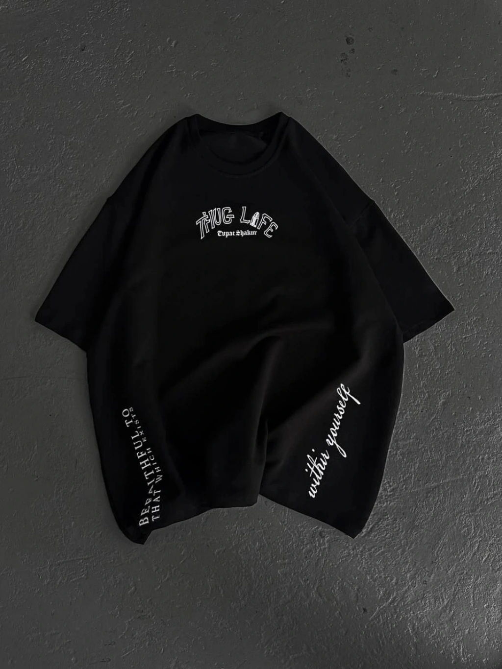 Unisex Baskılı Oversize T-Shirt - Siyah