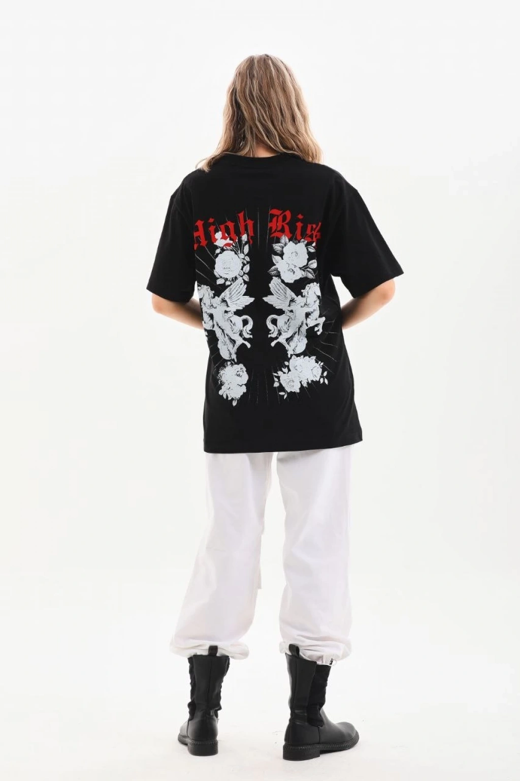 Unisex Baskılı Oversize T-Shirt - Siyah