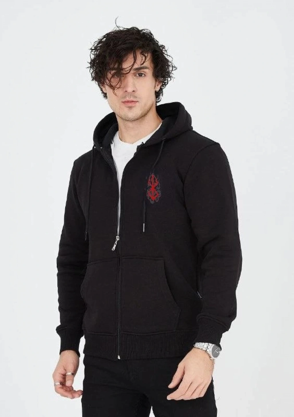 Samuray ZIP Fermuarlı Kapüşonlu SweatShirt- Siyah