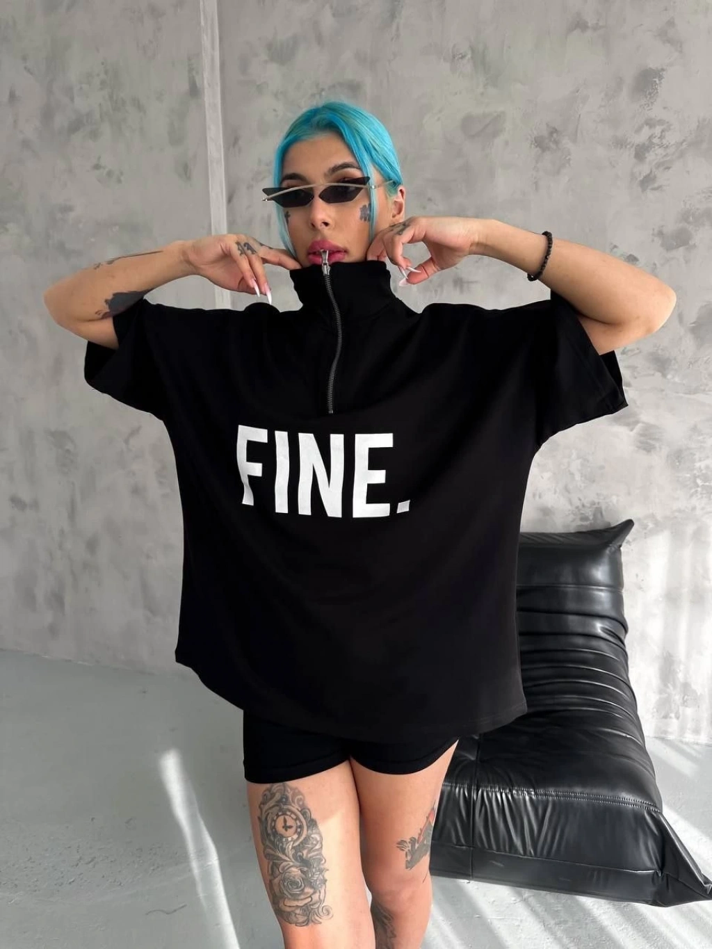 20/1 PENYE COMPACK DAY ONE BASKILI OVERSİZE BİSİKLET YAKA T-SHİRT - SİYAH