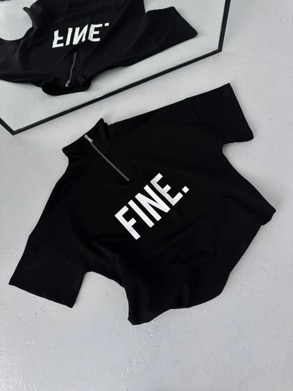 KADIN BİSİKLET YAKA KISA KOLLU BASKILI T-SHİRT - SİYAH