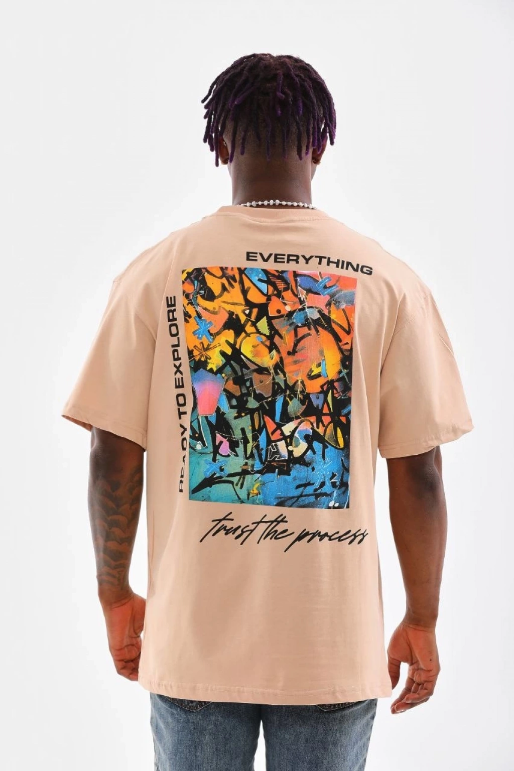 Erkek Oversize Tişört - Sırt Baskılı "Survivor Penguin" Temalı, Felsefi Yazılı Bisiklet yaka Tişört - Beyaz