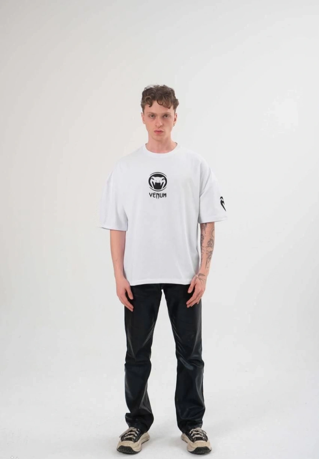 20/1 Penye Compack Ön Arka Ejder Baskılı Oversize Bisiklet Yaka T-shirt - Beyaz