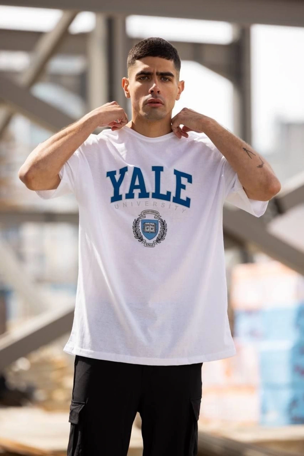 20/1 Penye Compack Ön Arka Ejder Baskılı Oversize Bisiklet Yaka T-shirt - Beyaz