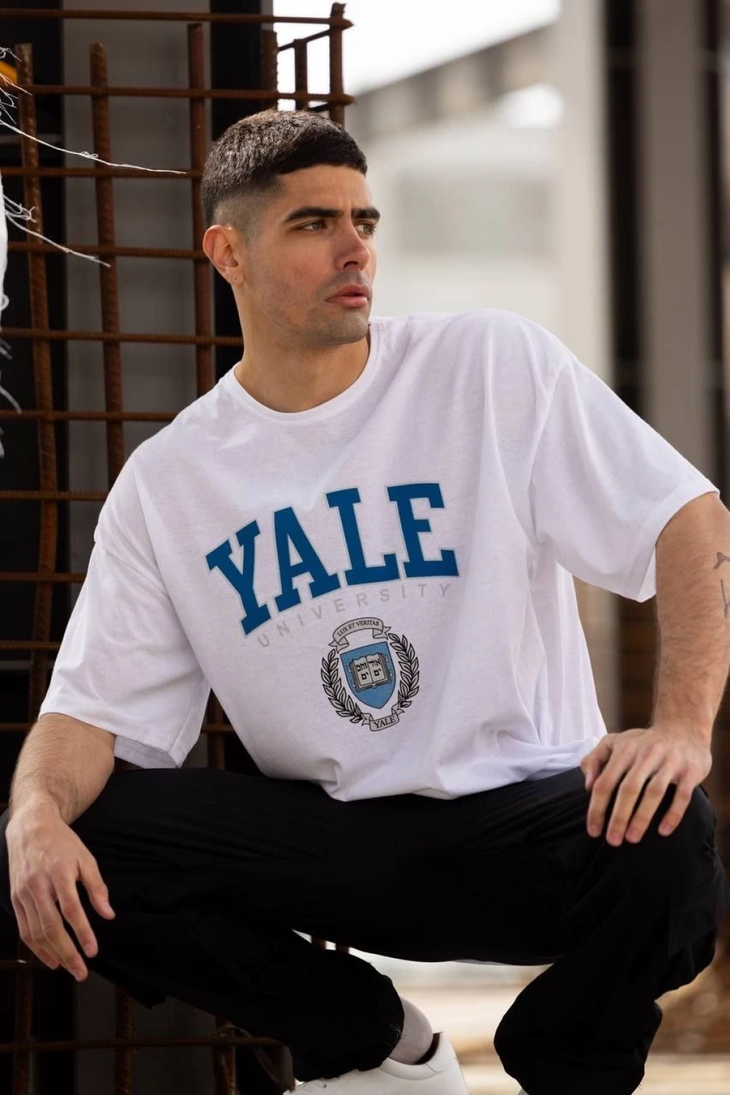 Unisex Bisiklet Yaka Baskılı Oversize T-Shirt - Beyaz
