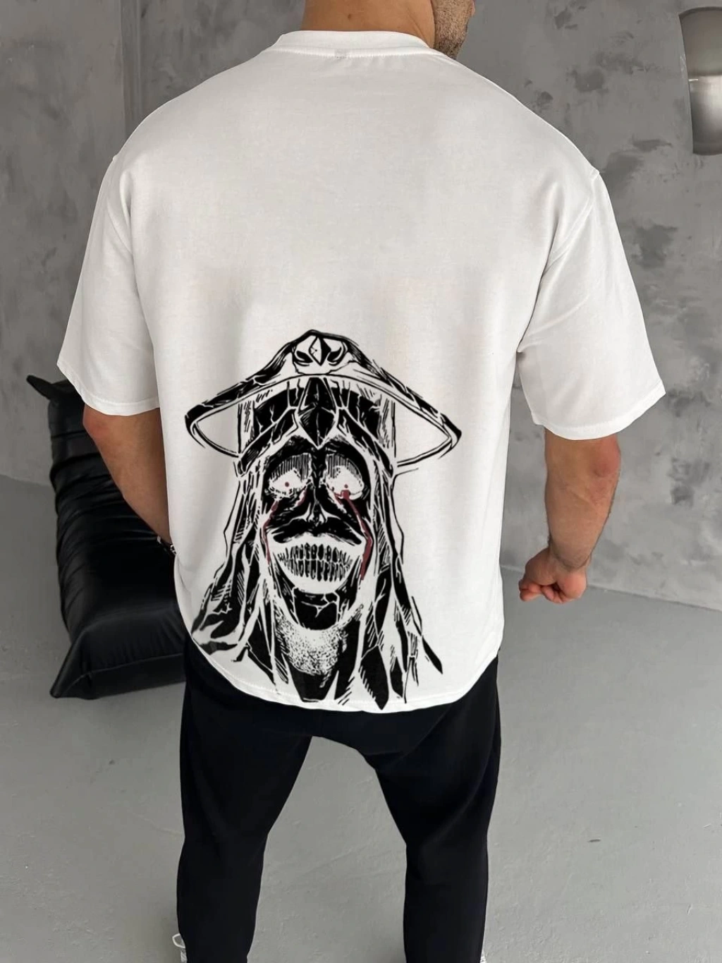 Eşsiz Baskı Tasarımlı Şık Büyük Beden Erkek Tişörtü - Rahat Polyester, Makinede Yıkanabilir, Yuvarlak Yaka - Her Mevsim İçin Mükemmel - Beyaz
