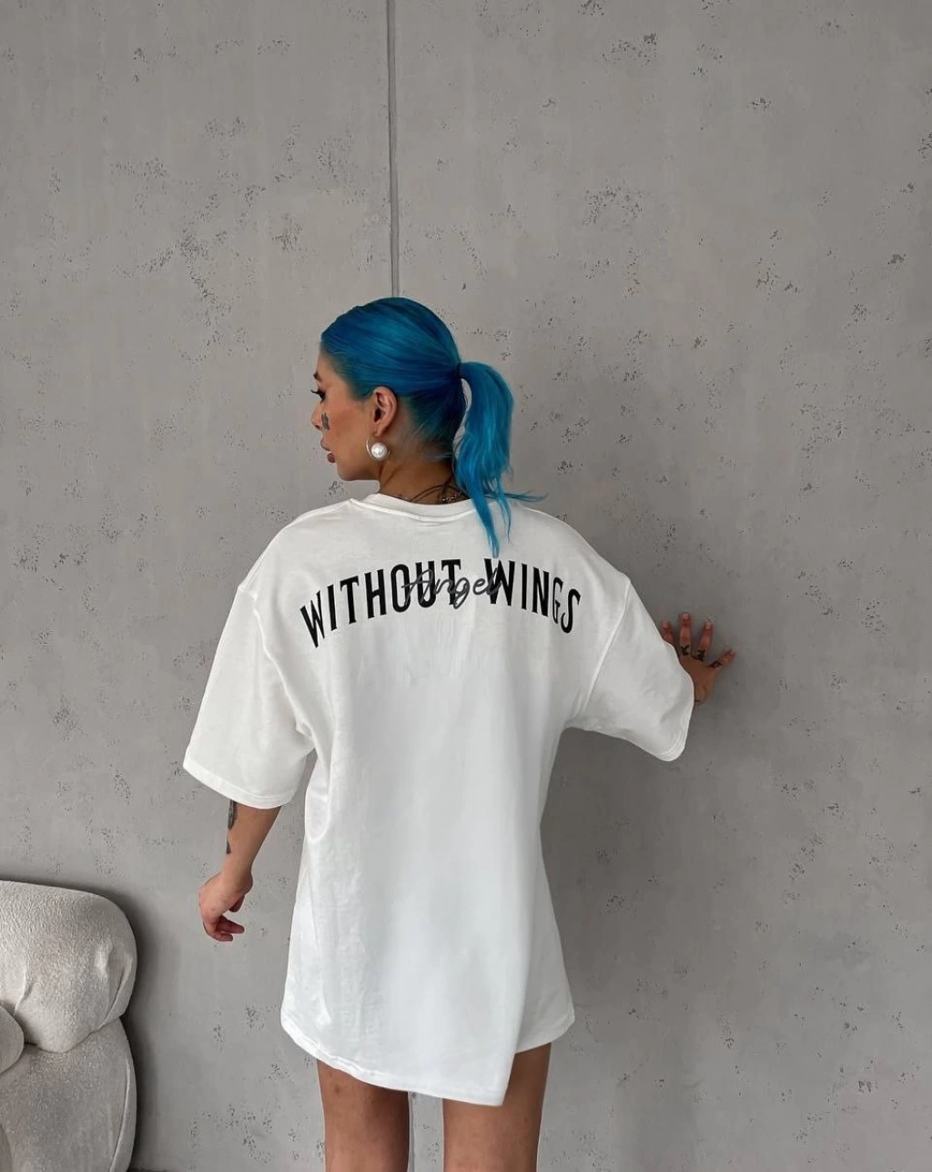 AICG ÖN ARKA BASKILI BİSİKLET YAKA KADIN OVERSİZE BİSİKLET YAKA T-SHİRT - BEYAZ