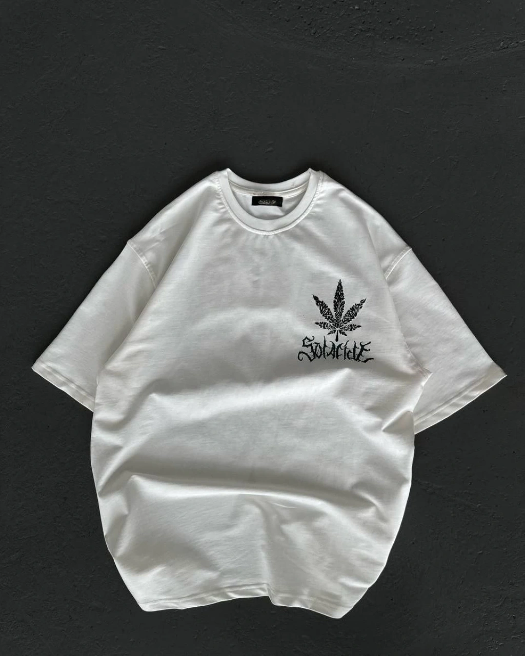 DAY ONE BASKILI OVERSİZE BİSİKLET YAKA T-SHİRT - BEYAZ