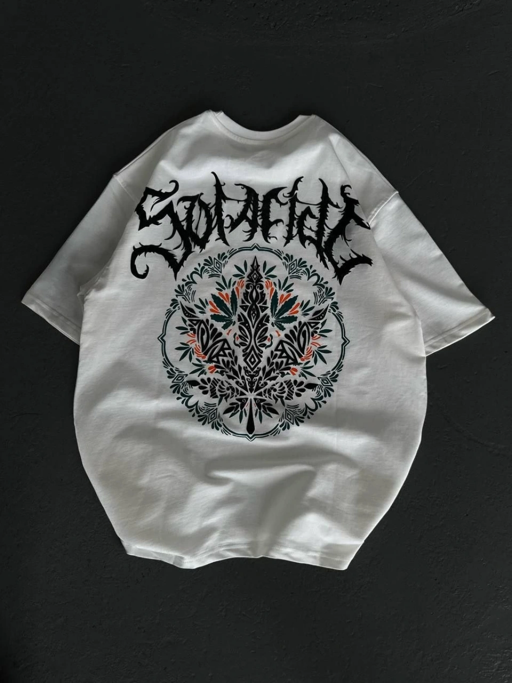 GENİŞ KESİM PAMUKLU TİŞÖRT - "GANDHI THE PROJECT" BASKILI, BEYAZ, RAHAT KESİM, KISA KOLLU, GÜNLÜK KIYAFET, HER GÜN GİYİLEBİLECEK TİŞÖRT- BEYAZ