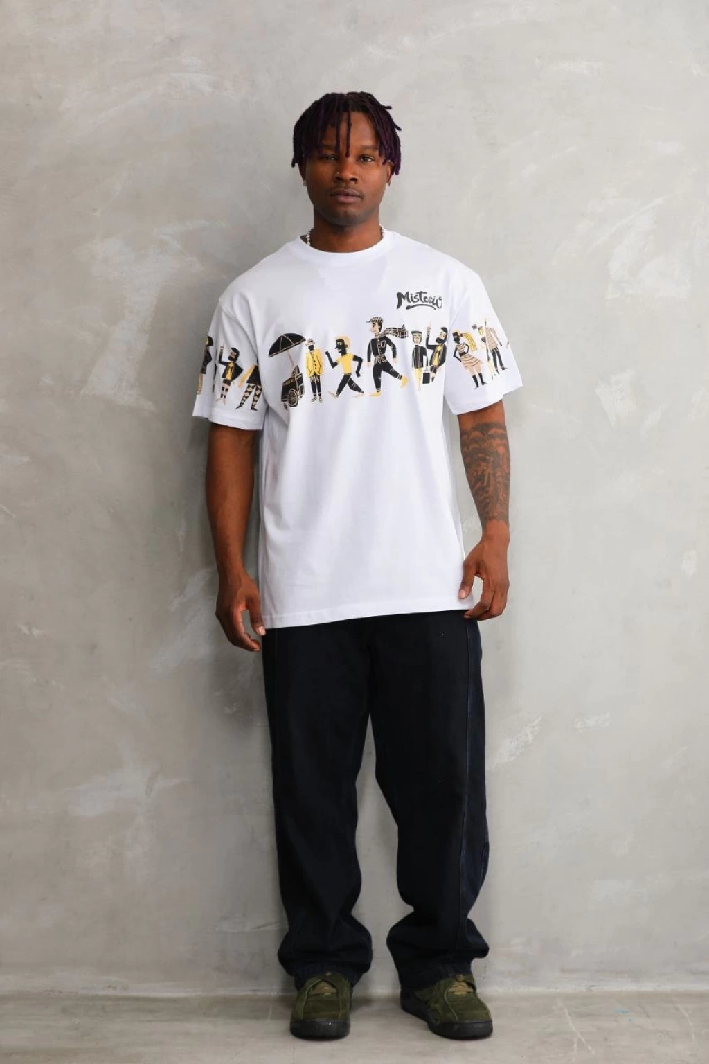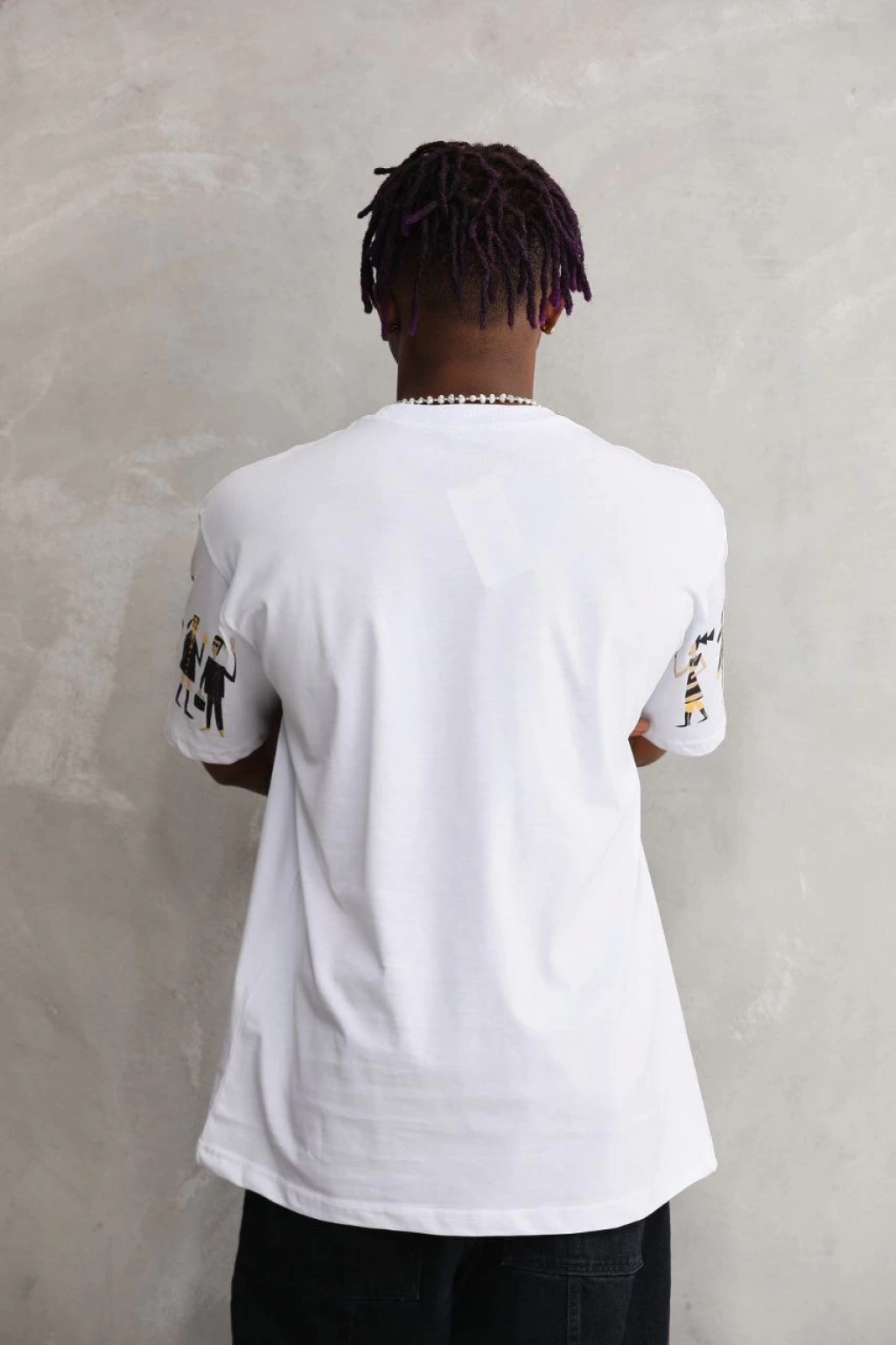 Unisex Bisiklet Yaka Baskılı Oversize T-Shirt - Beyaz